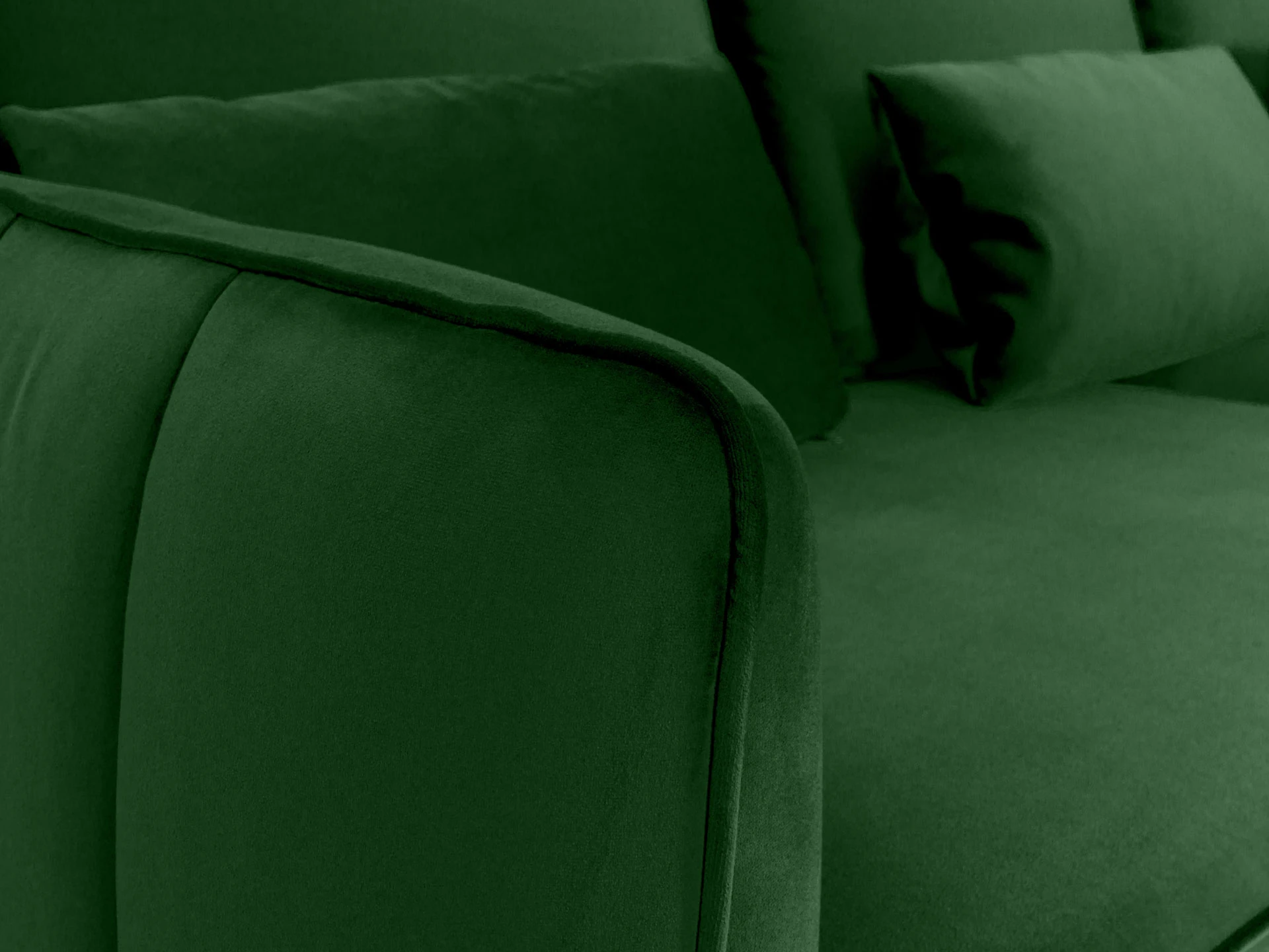 Спинка и подлокотники расположены на одном уровне. Такая конструкция создаёт границы уединённого пространства и отвечает за безмятежный отдых. Идеальным дополнением которого являются упругие подушки спинки.