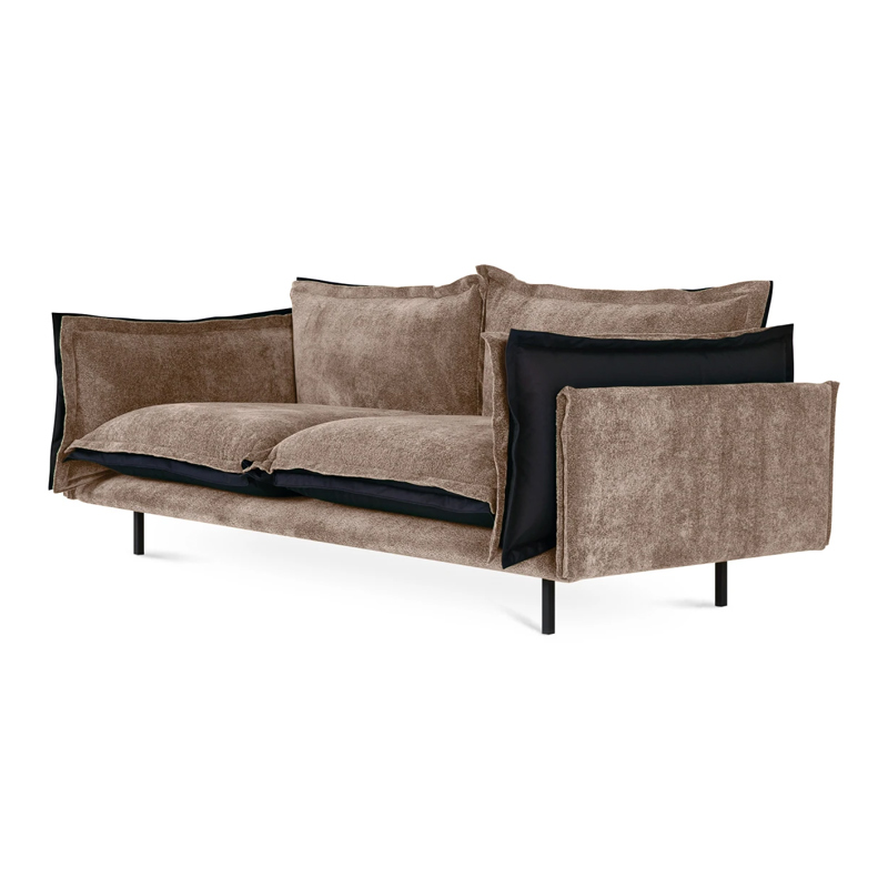 Металлические опоры дивана обеспечивают устойчивость, они окрашены черной матовой эмалью. А также снабжены пластиковыми подпятниками и сохраняют напольное покрытие от царапин.