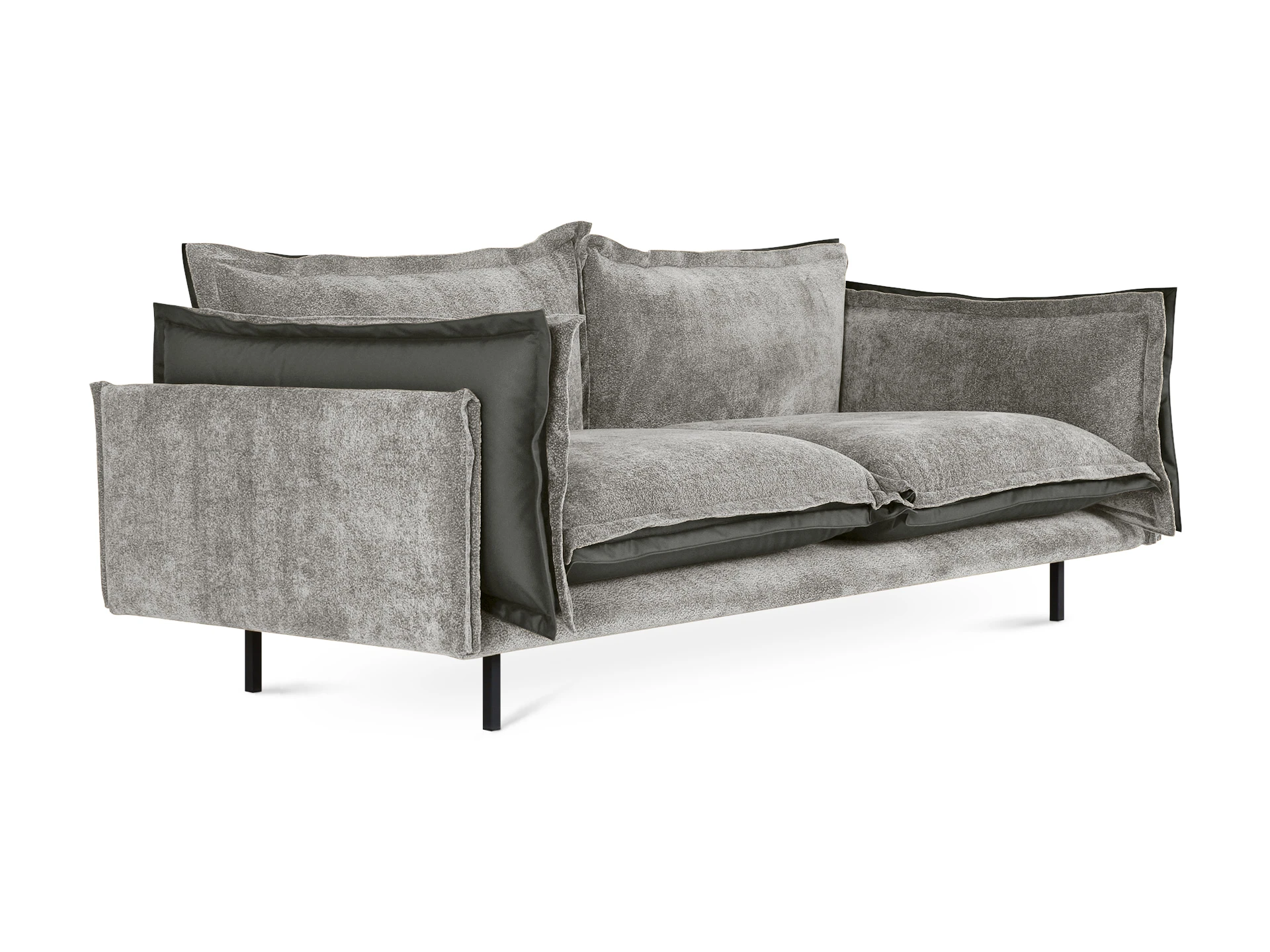 Металлические опоры дивана обеспечивают устойчивость, они окрашены черной матовой эмалью. А также снабжены пластиковыми подпятниками и сохраняют напольное покрытие от царапин.
