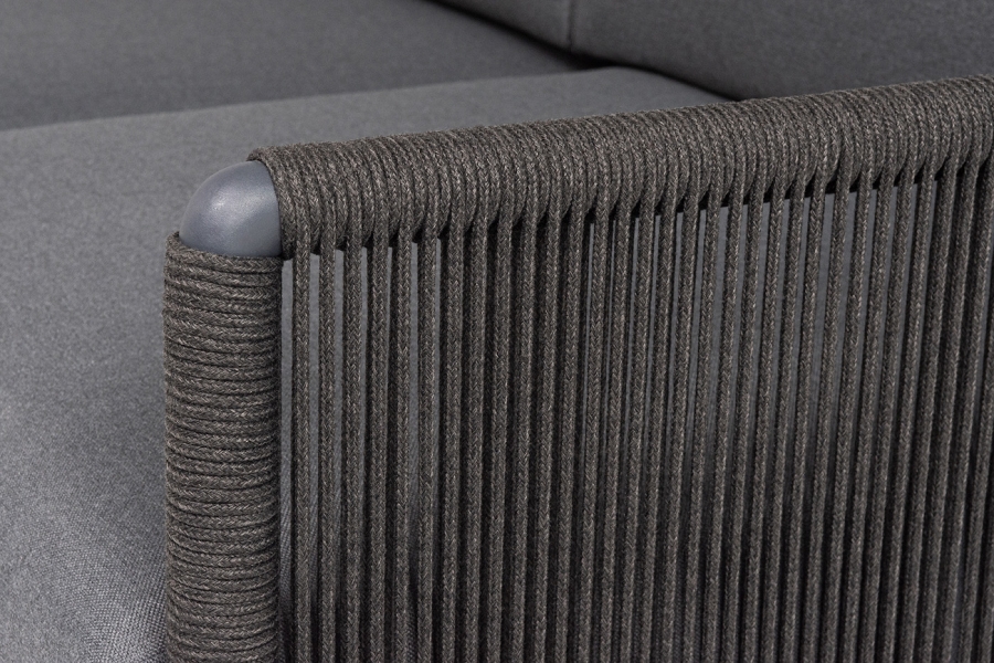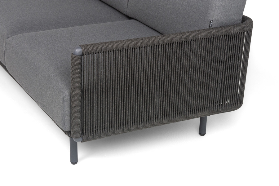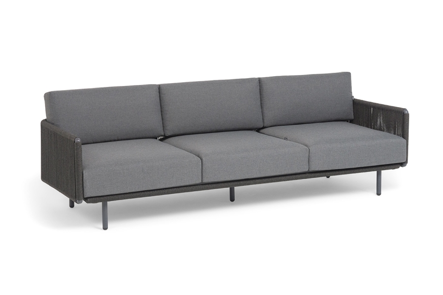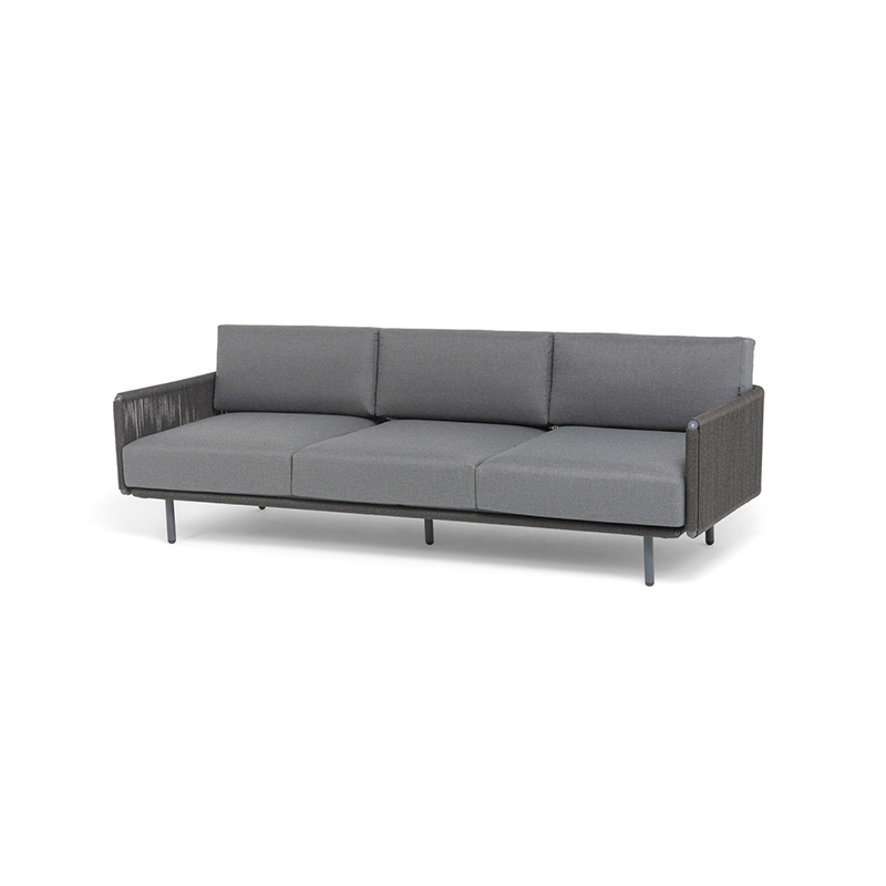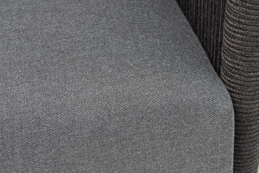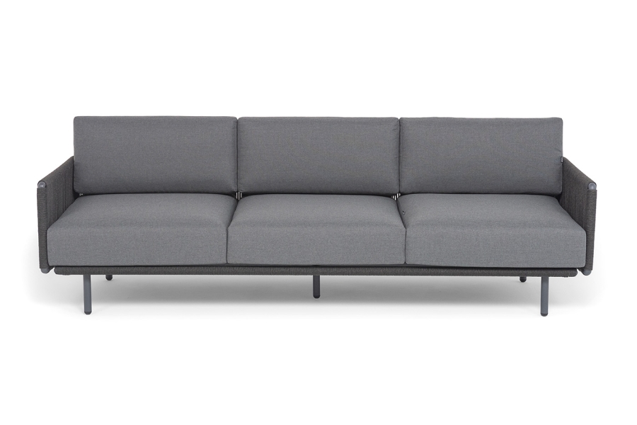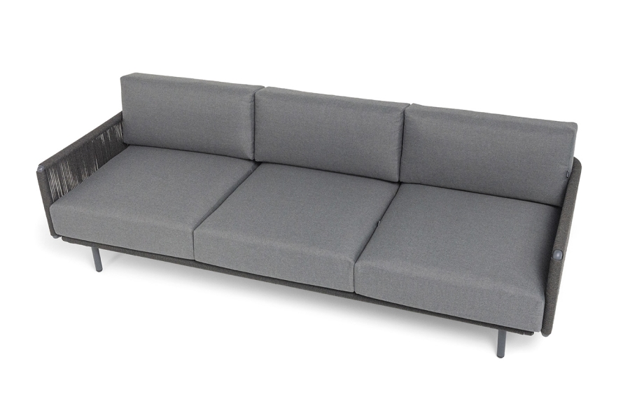 "Джелло" диван 3-местный плетеный из роупа, каркас алюминий темно-серый (RAL7024) муар, роуп темно-серый круглый, ткань темно-серая 027