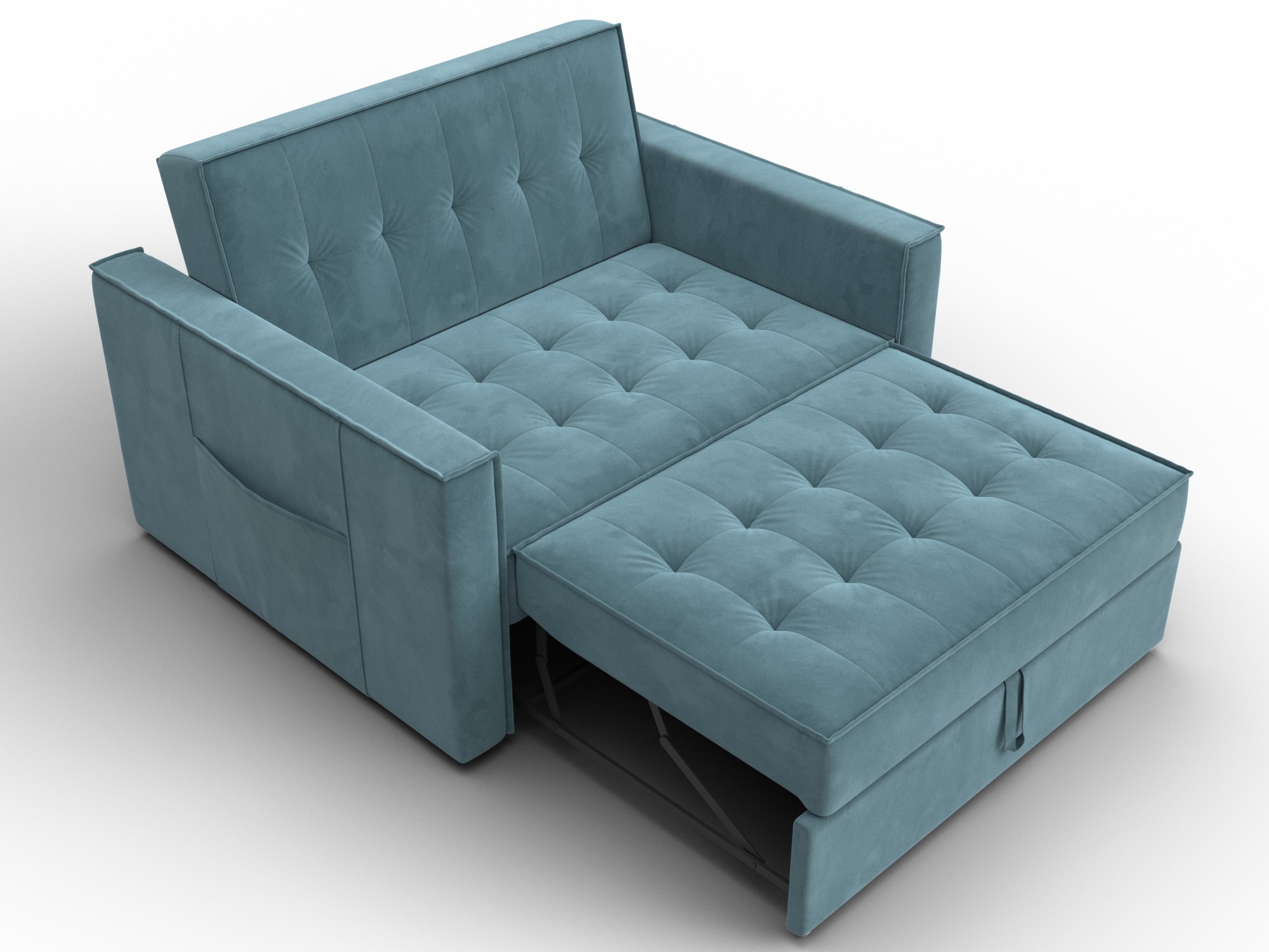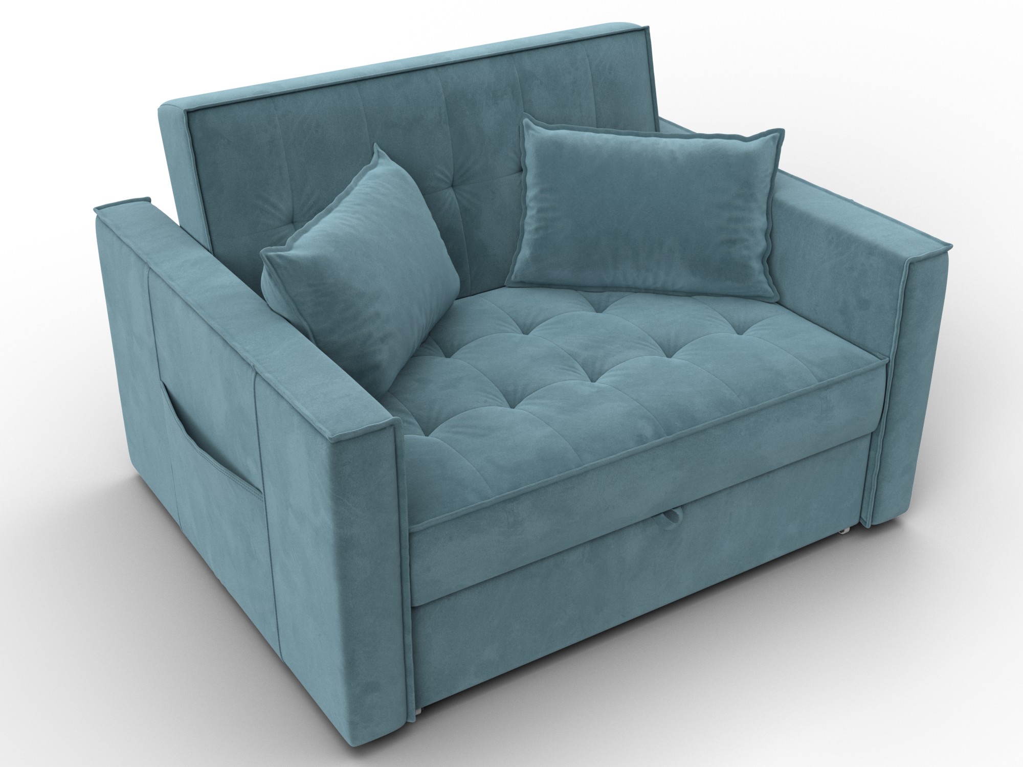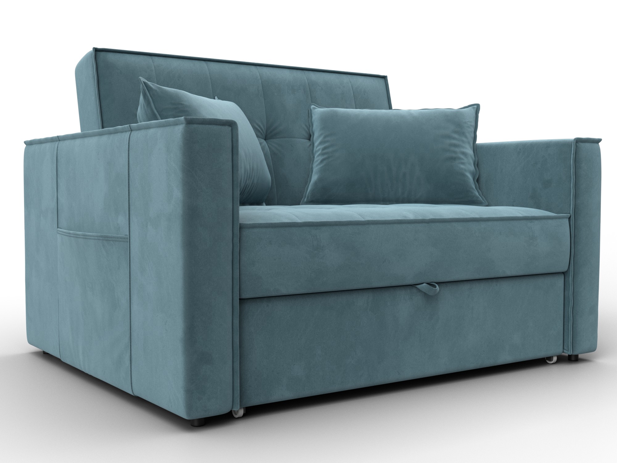 Диван прямой Лига-104 (140), SEVEN 113 бирюзовый, Велюр