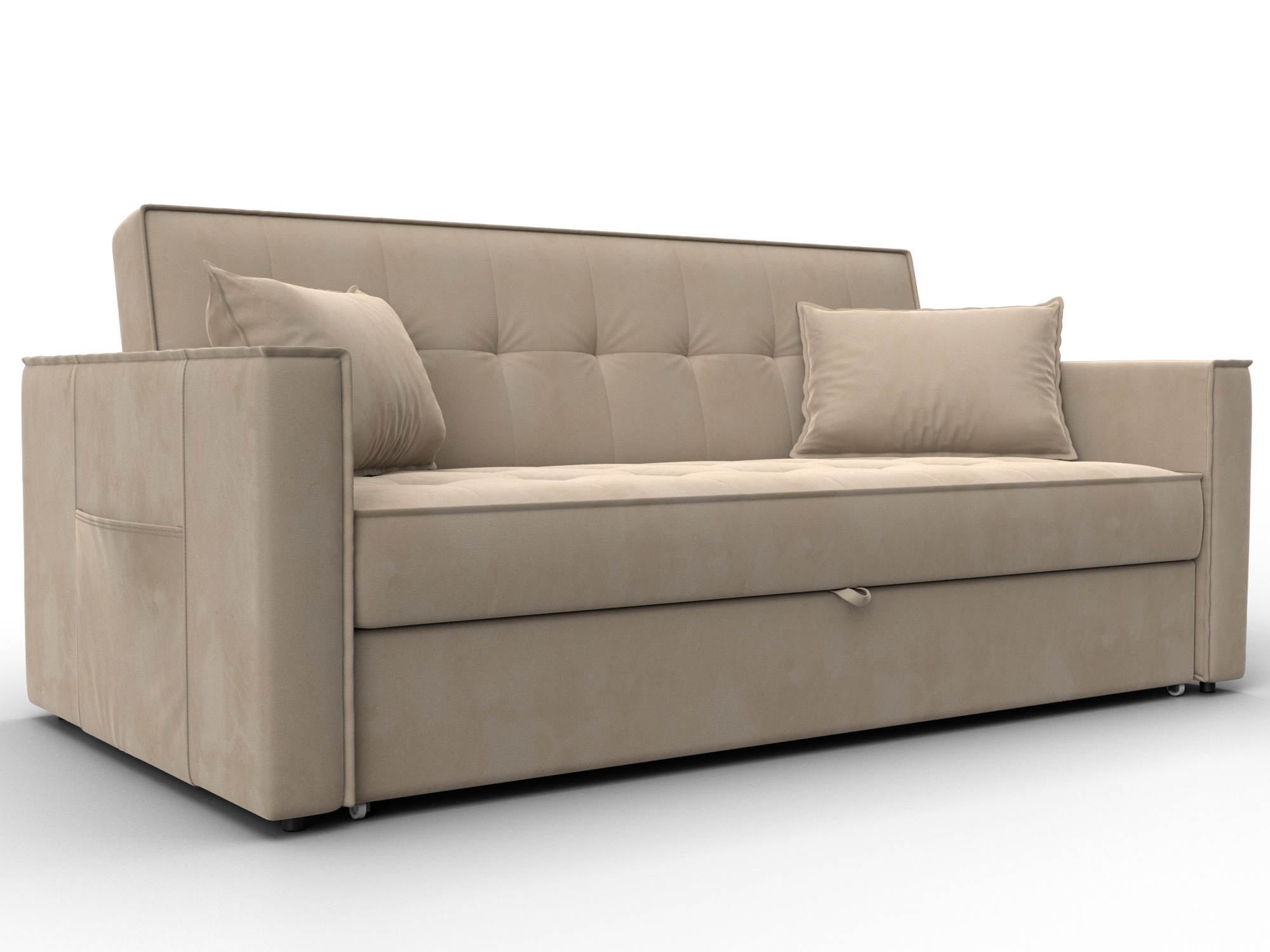 Диван прямой Лига-104 (160), SEVEN 729 бежевый, Велюр