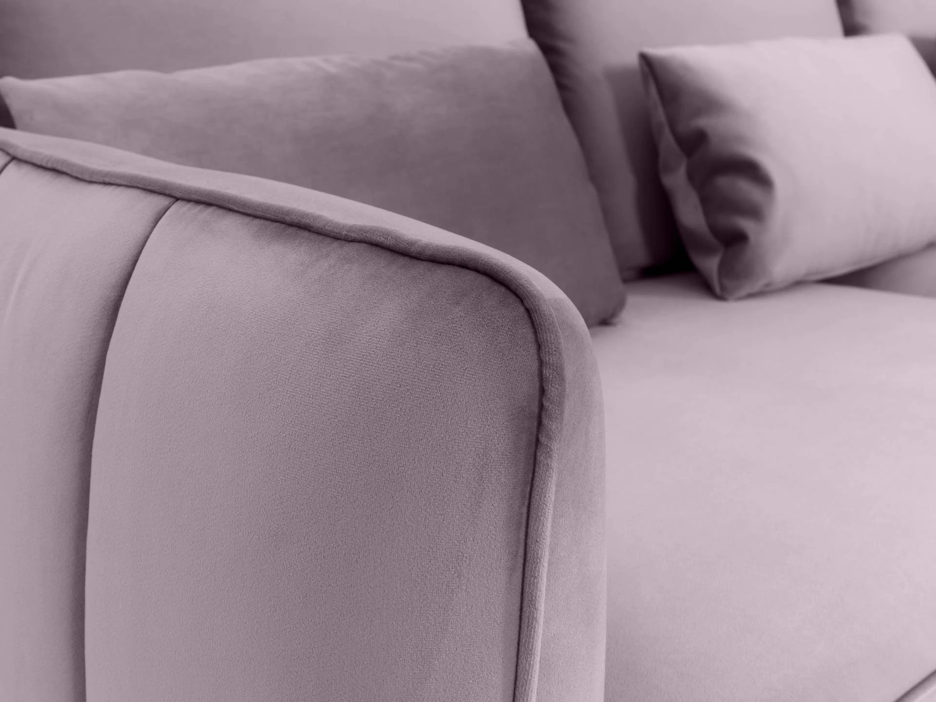 Спинка и подлокотники расположены на одном уровне. Такая конструкция создаёт границы уединённого пространства и отвечает за безмятежный отдых. Идеальным дополнением которого являются упругие подушки спинки.
