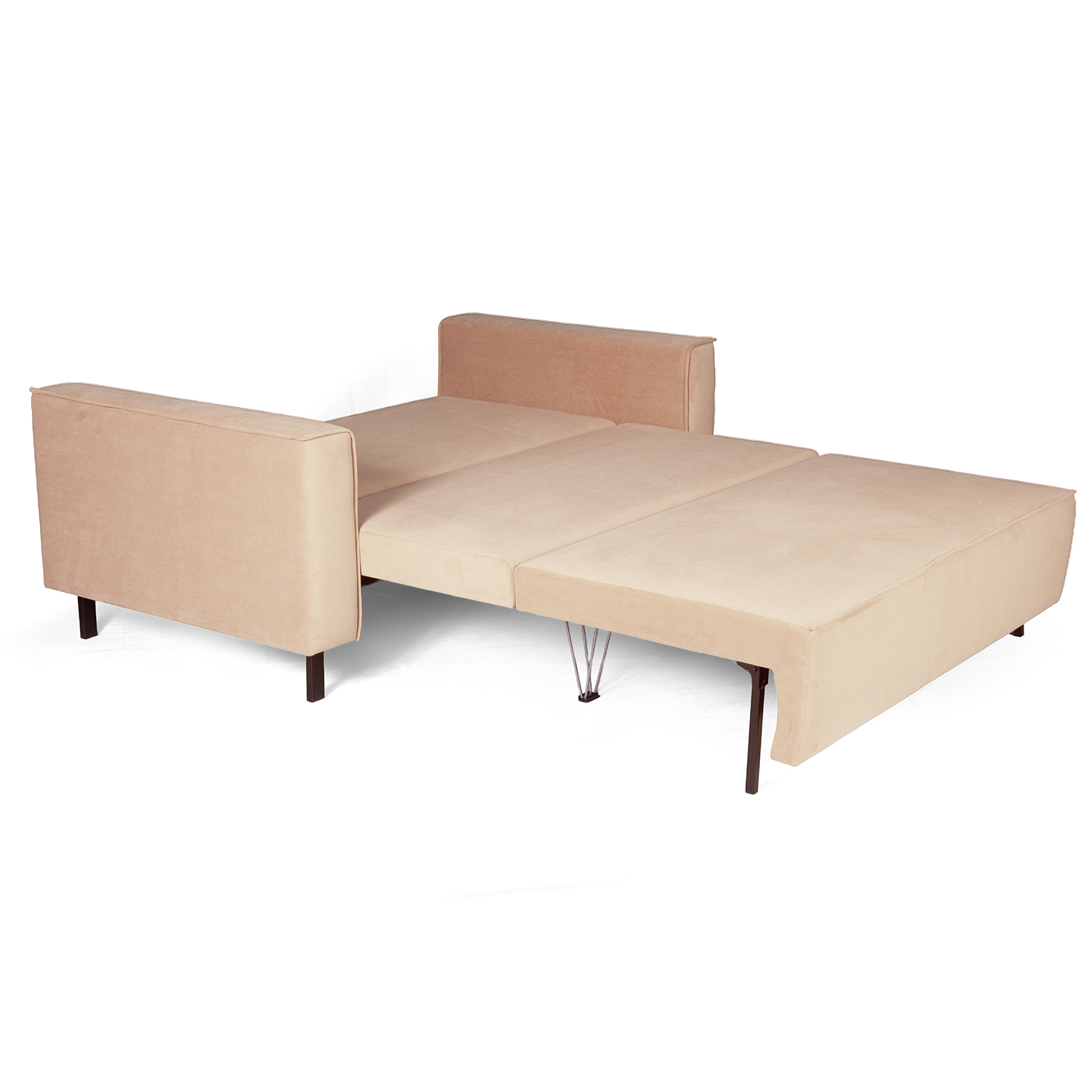 Спальное место с цельной царгой выполнено в основном материале, благодаря чему диван сохраняет аккуратный и целостный внешний вид даже в разложенном состоянии. Ширина спального места 140 см подходит для комфортного сна, а увеличенная длина 207 см рассчитана на высоких пользователей (до 195 см). Максимальная допустимая нагрузка — до 180 кг.