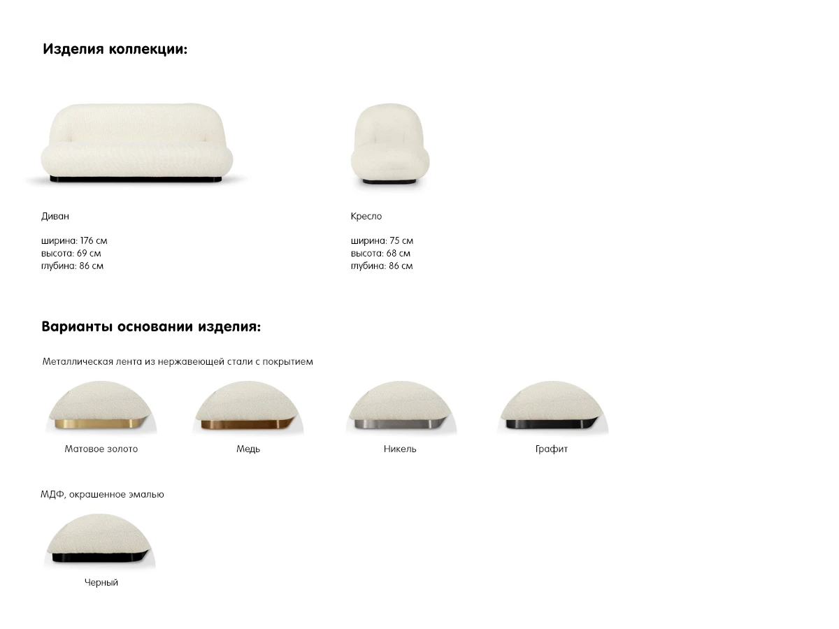 Модели словно «левитируют» над полом, создавая чувство полного релакса. Закругленные сиденья, компактные подлокотники, комфортные, чуть отклоненные спинки, поддержать легкость и эргономику пространства.