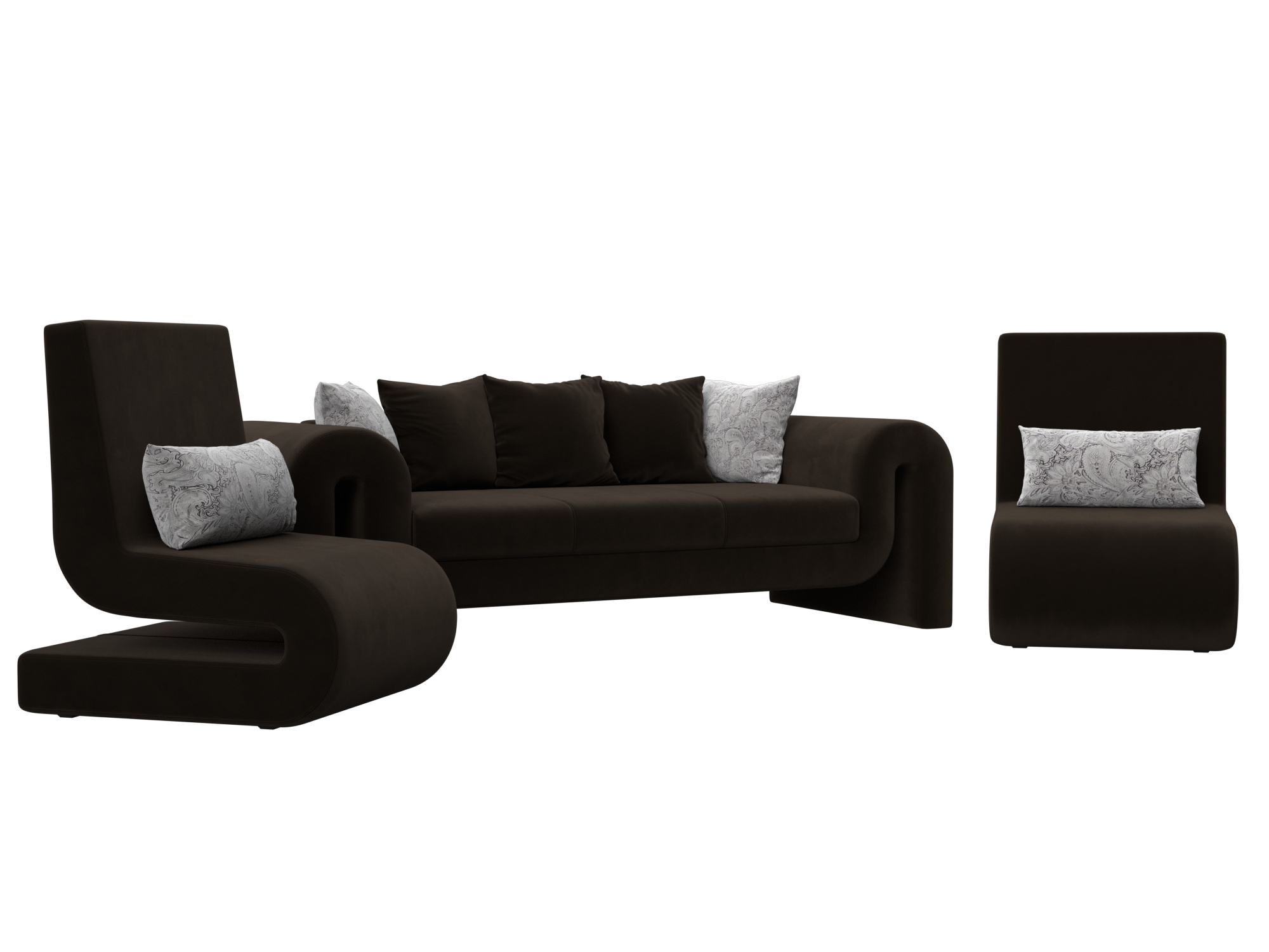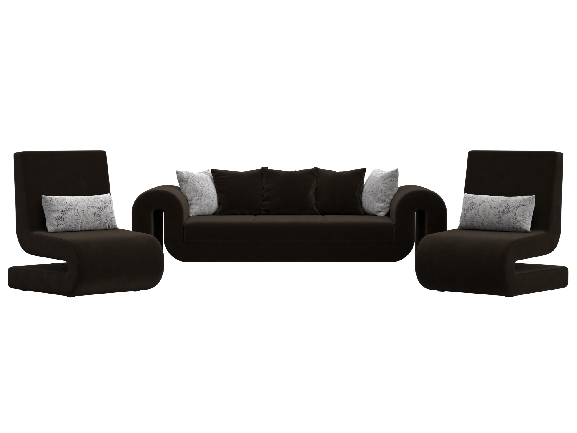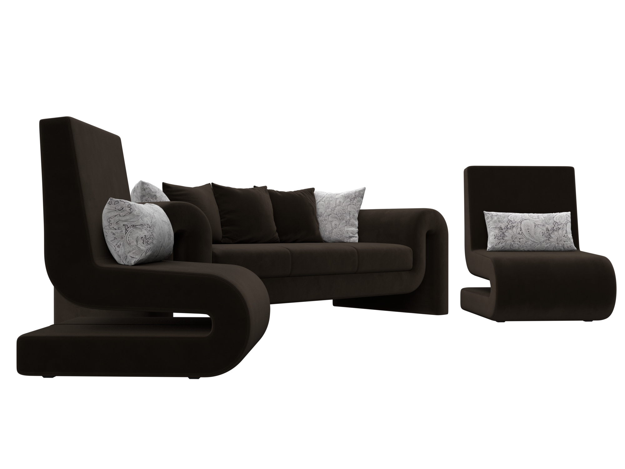 Комплект Волна-1 (диван, 2 кресла), Коричневый; Серый, Микровельвет; Велюр