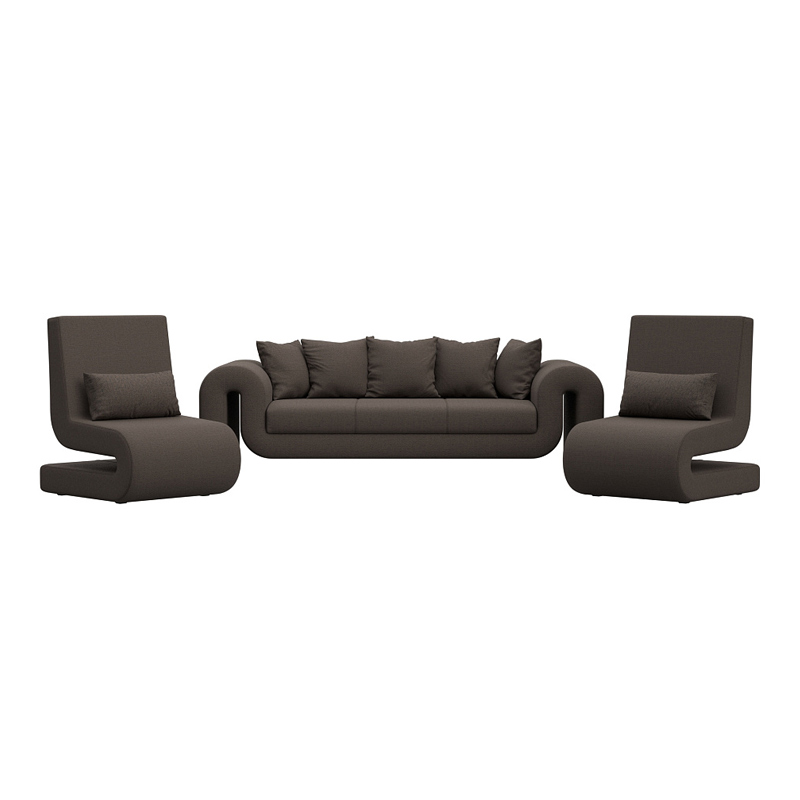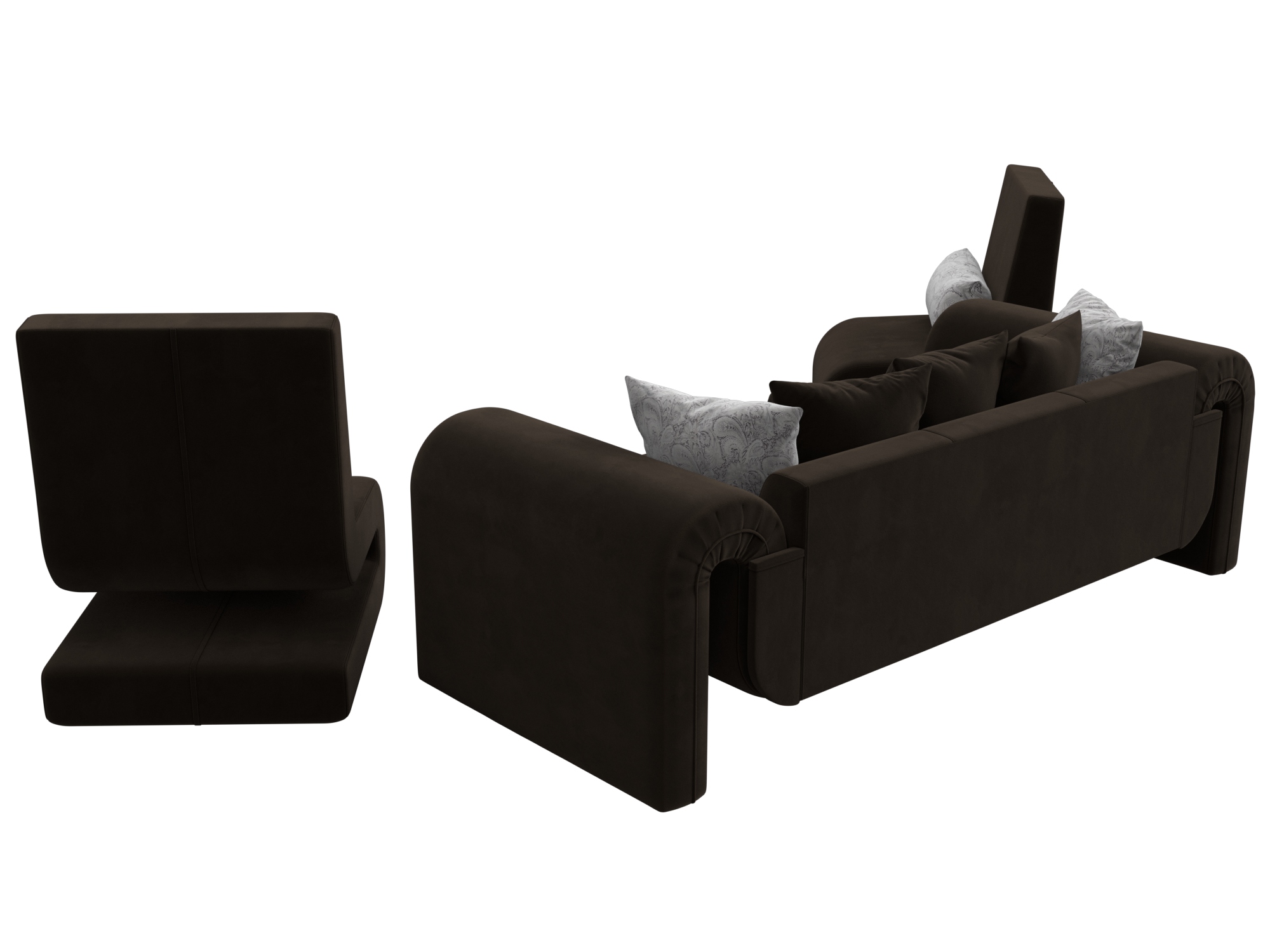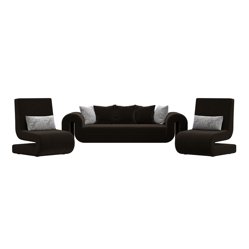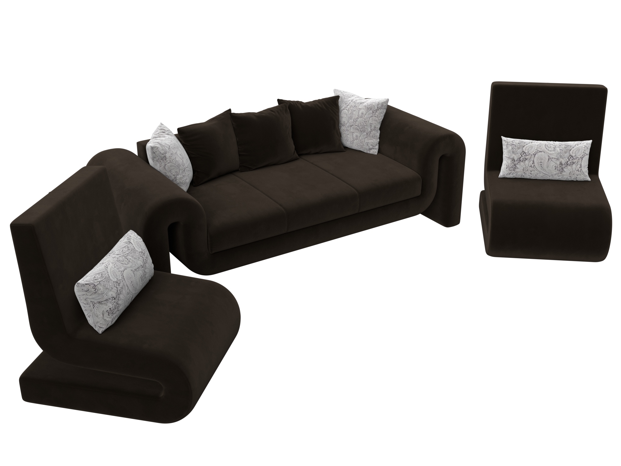 Комплект Волна-1 (диван, 2 кресла), Коричневый; Серый, Микровельвет; Велюр