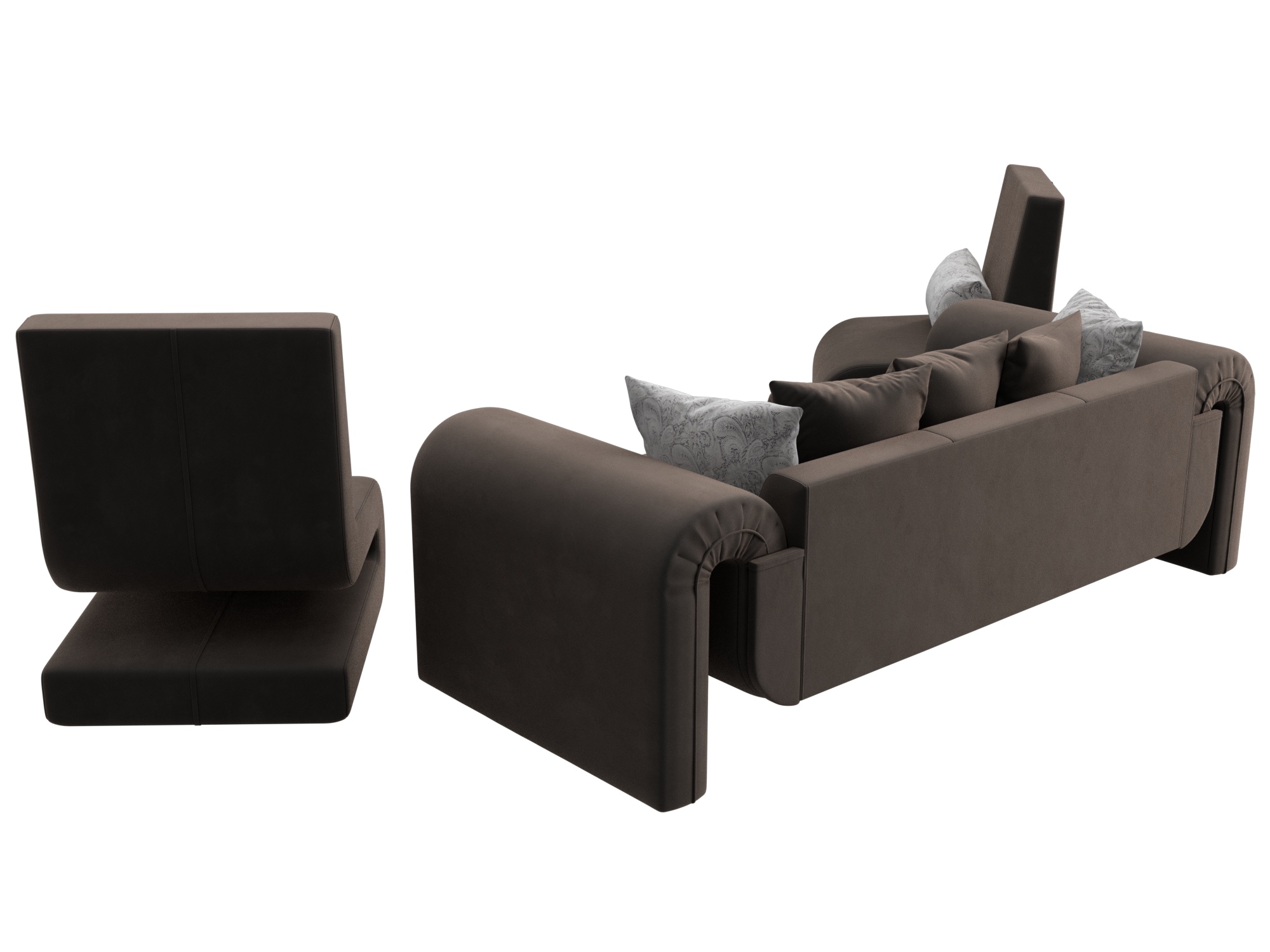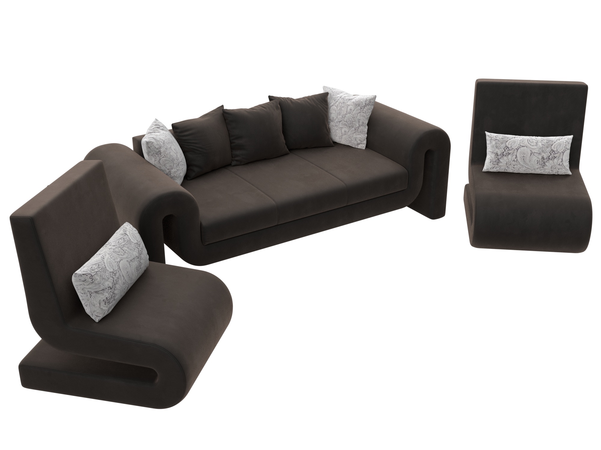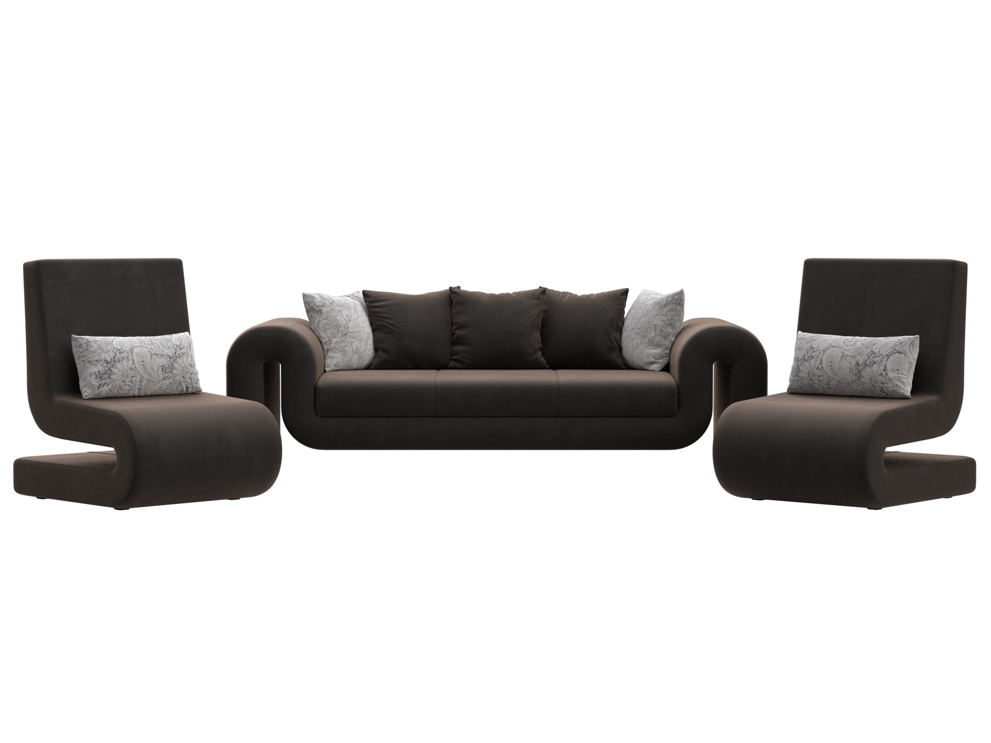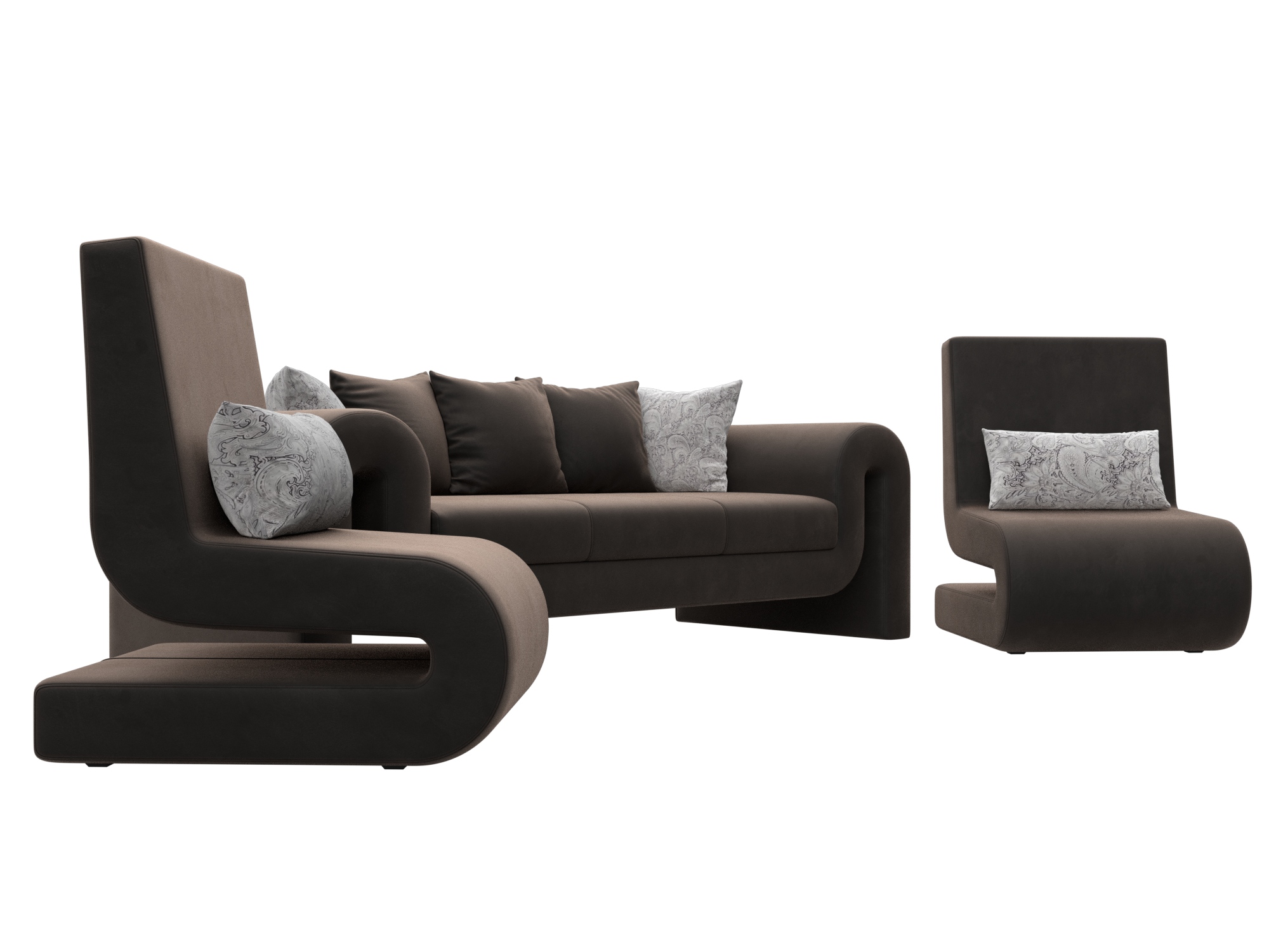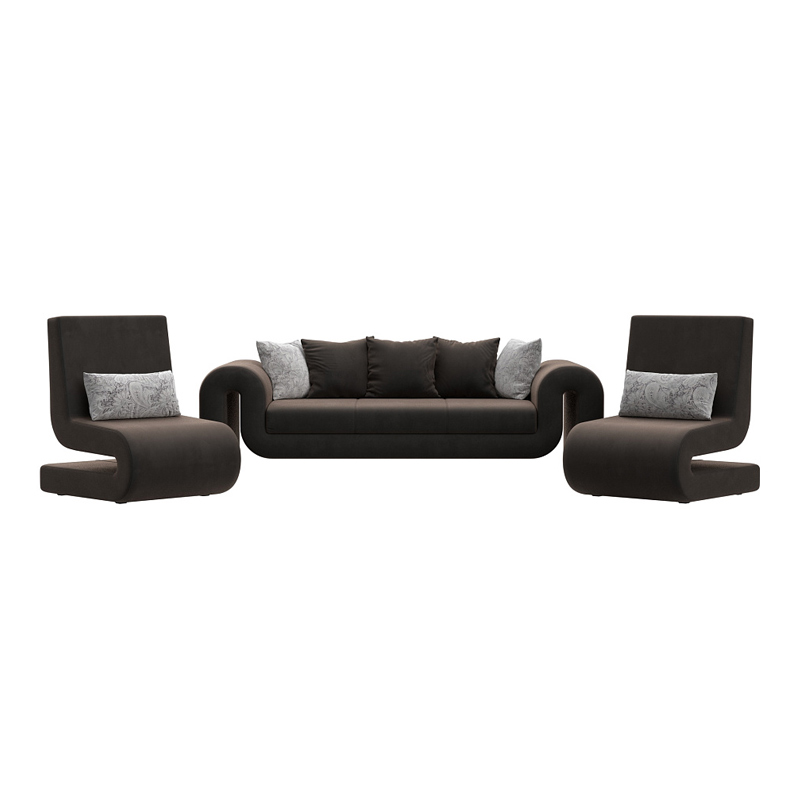 Комплект Волна-1 (диван, 2 кресла), Seven 727 коричневый; Seven 17 серый, Велюр