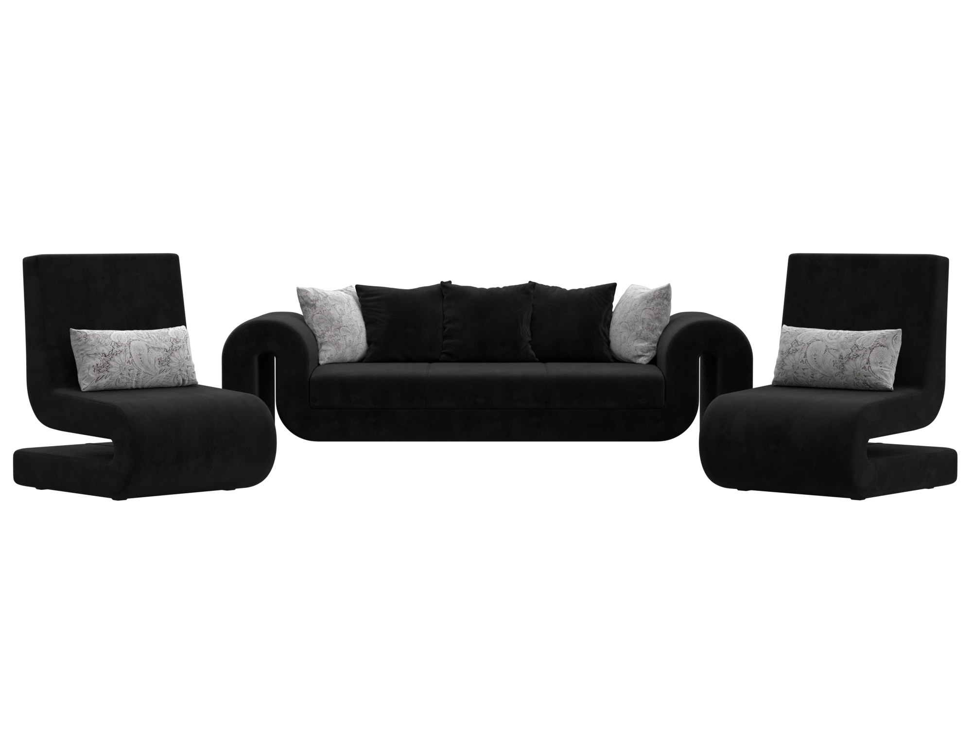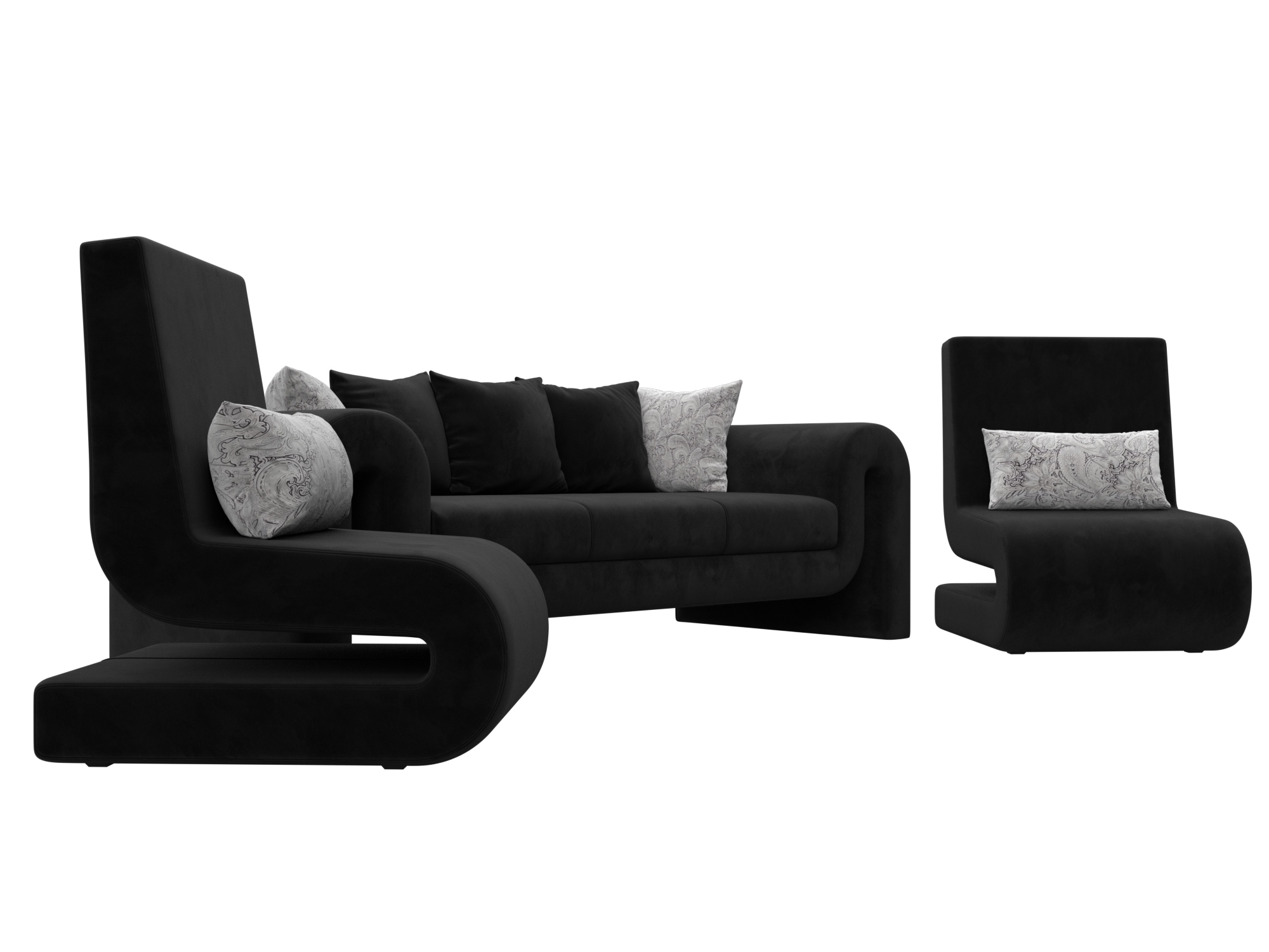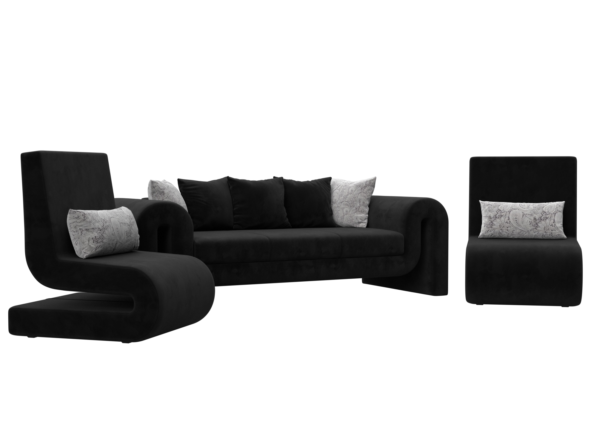 Комплект Волна-1 (диван, 2 кресла), Seven 35 черный;Seven 17 серый, Велюр