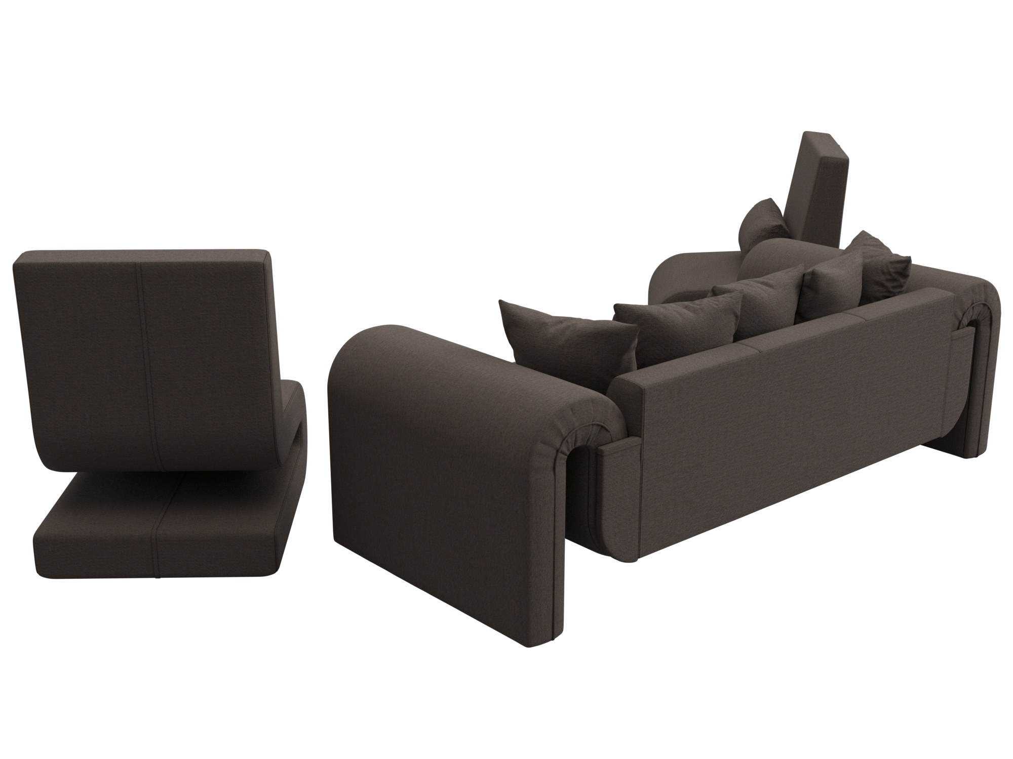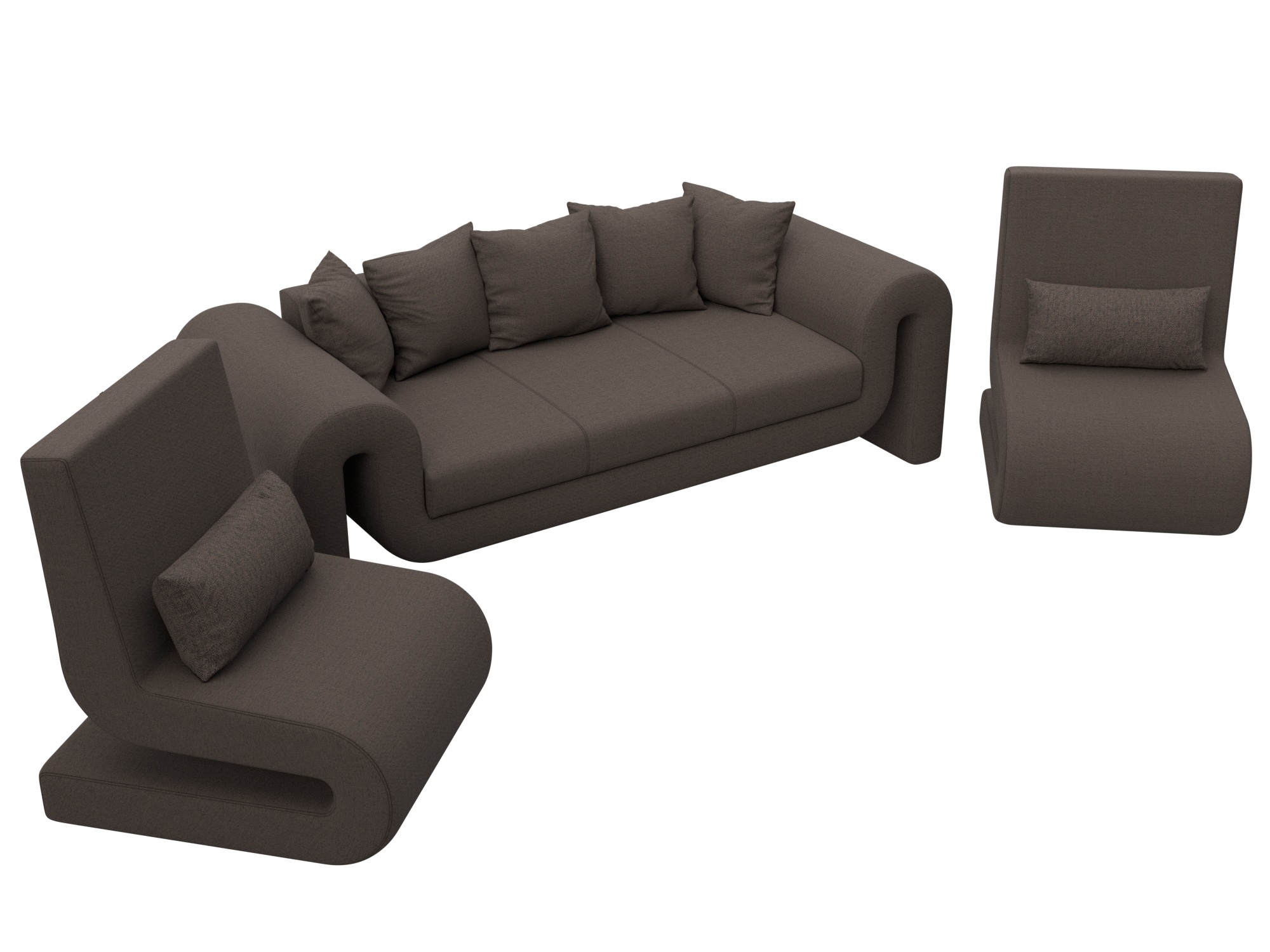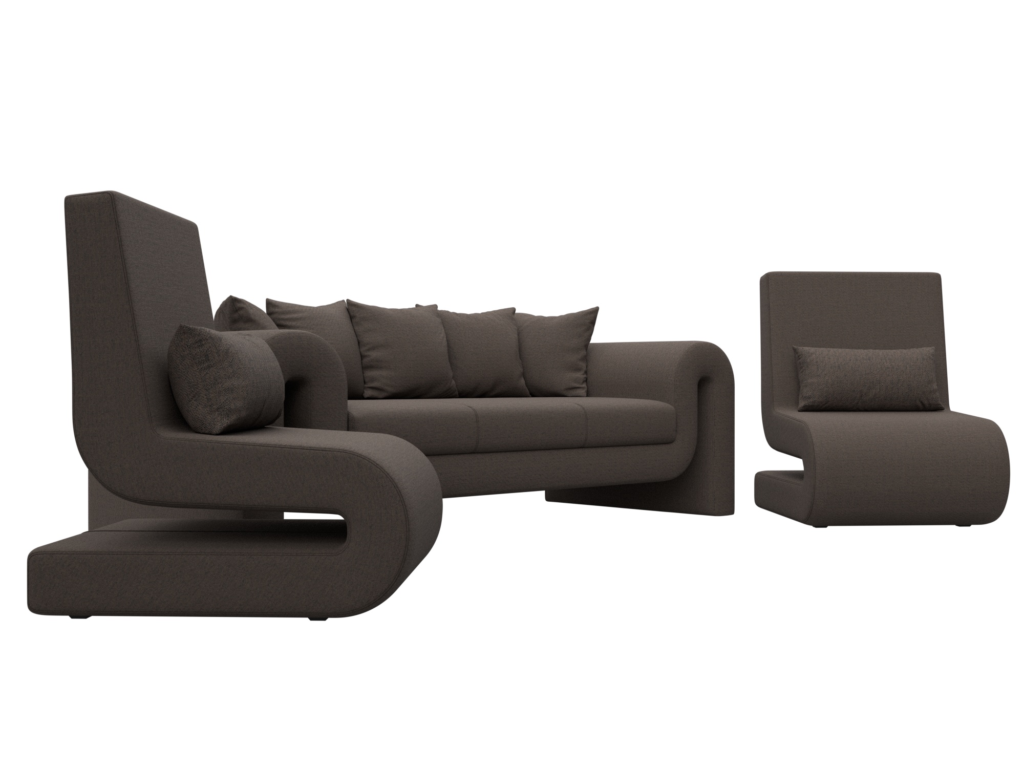 Комплект Волна-1 (диван, 2 кресла), Амур 05 коричневый, Рогожка