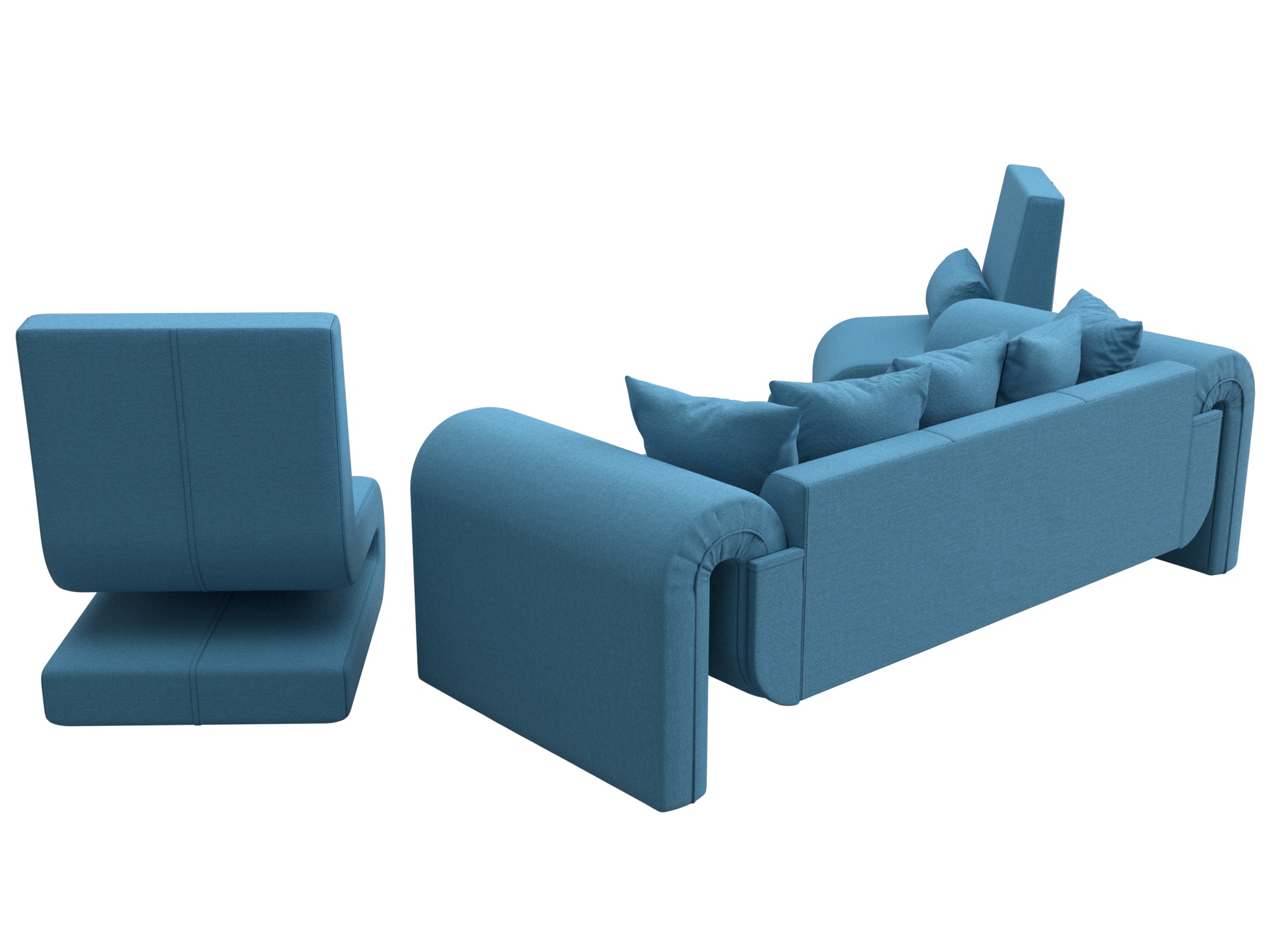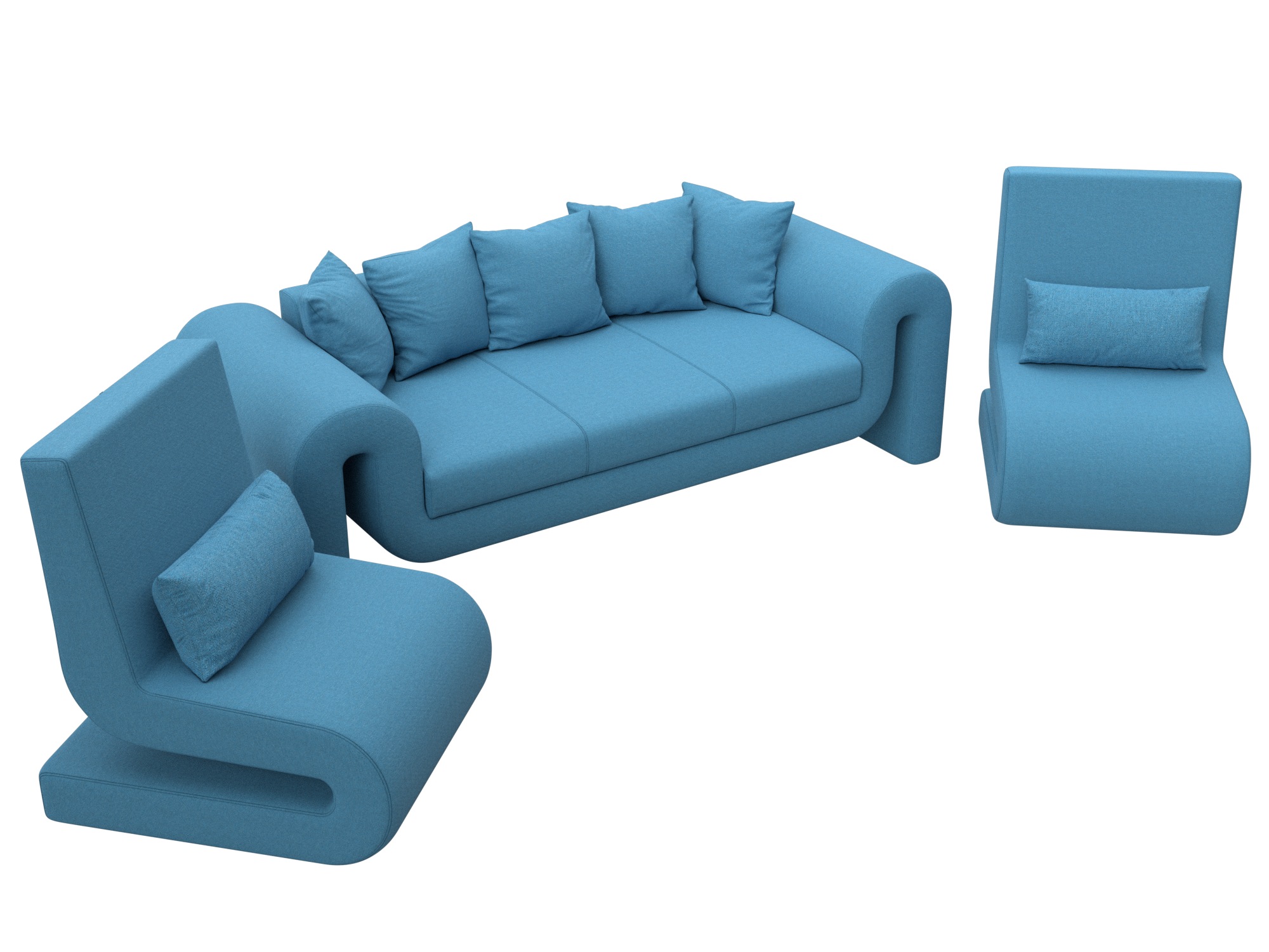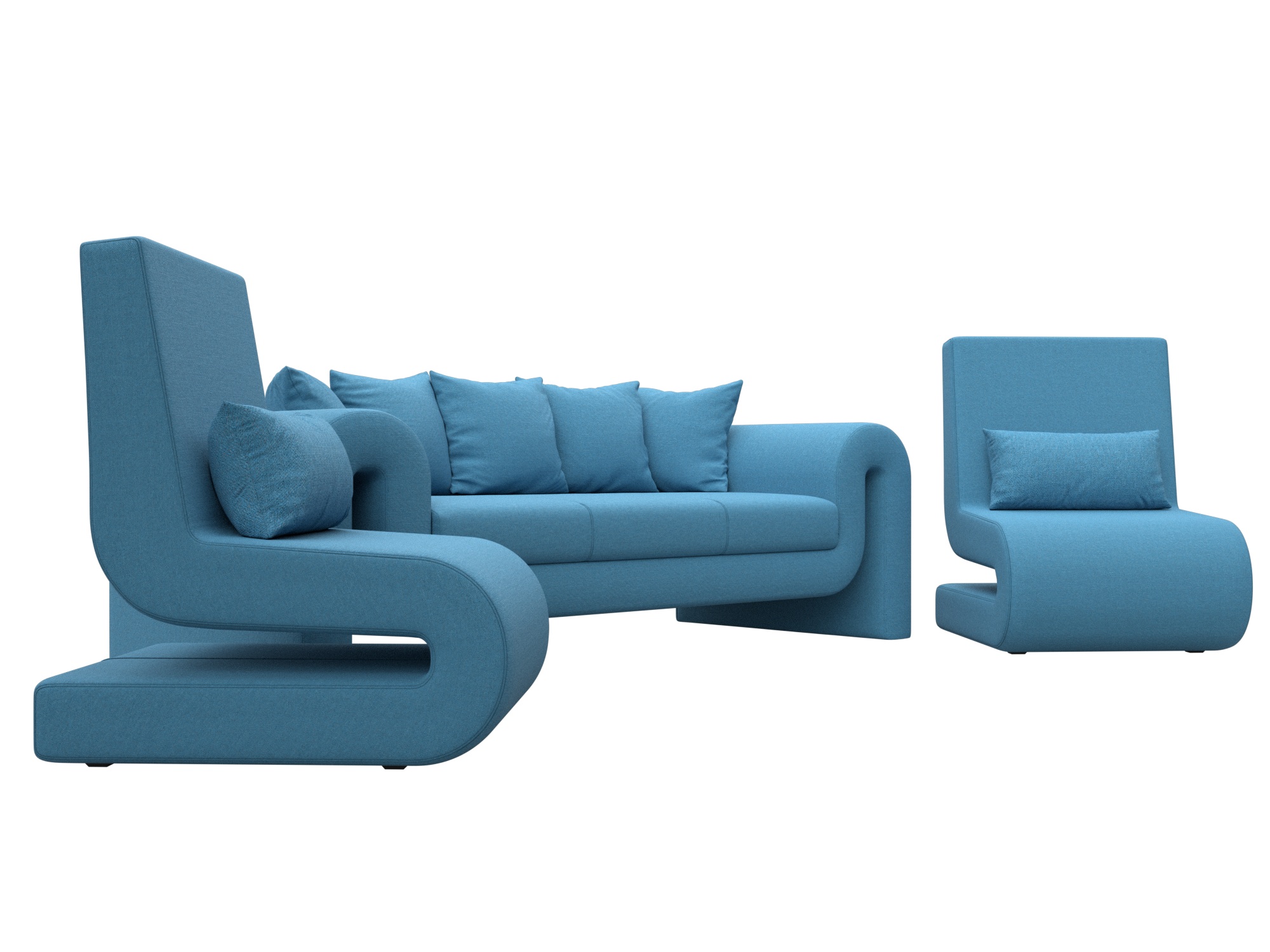 Комплект Волна-1 (диван, 2 кресла), Амур 10 голубой, Рогожка