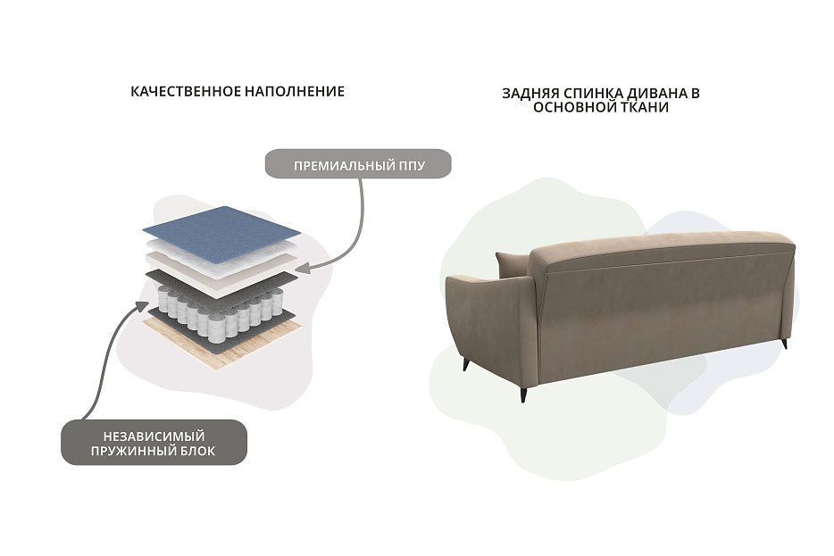 Наполнитель отлично подходит для дивана в гостиную. Пружины связаны между собой посредством особого плетения, что позволяет избежать их прямого соприкосновения и трения – звуки не потревожат во время отдыха. - Упругость и мягкость