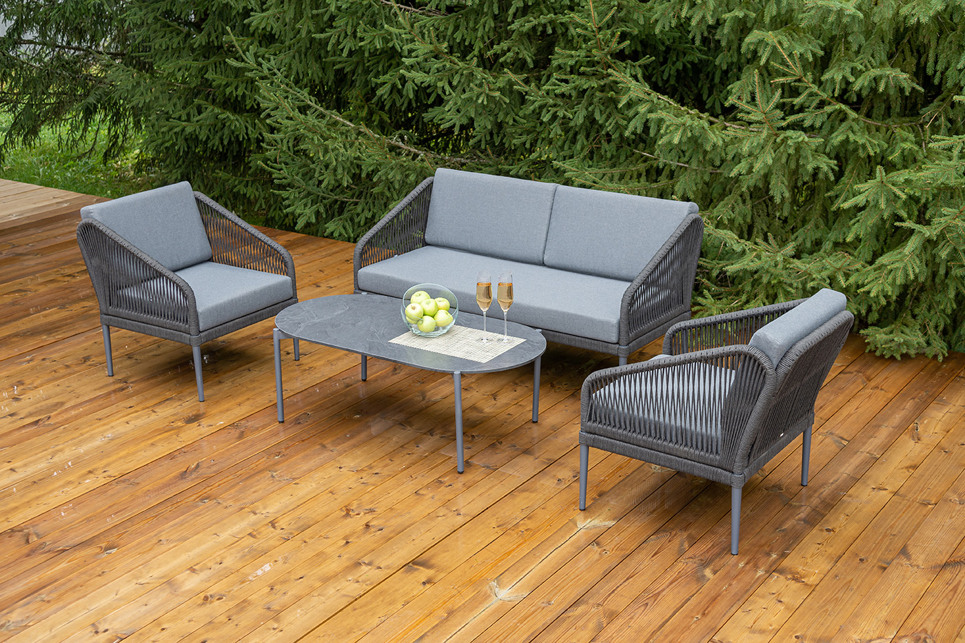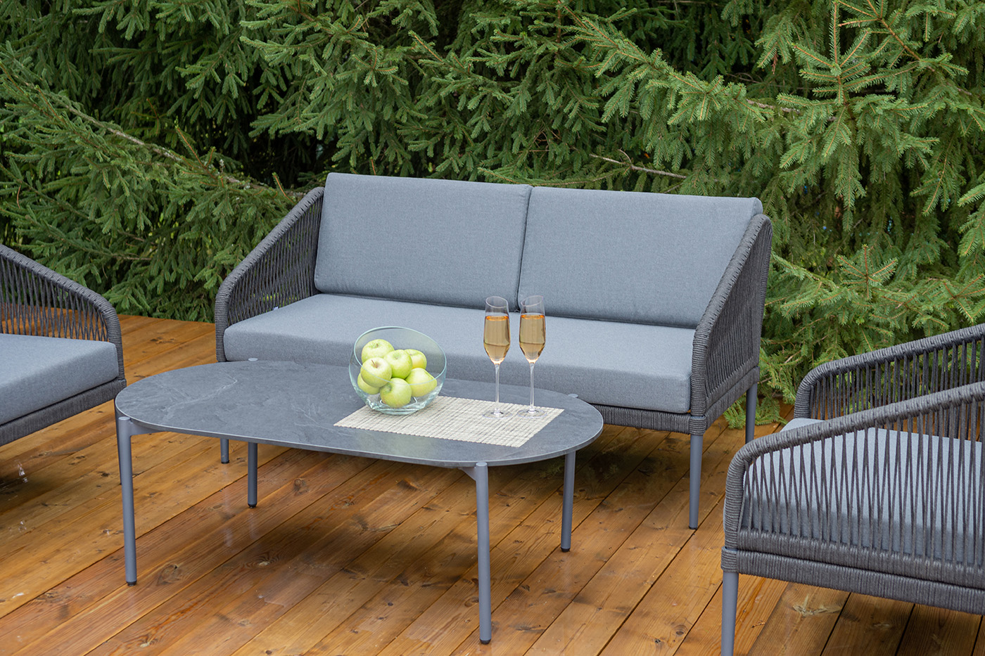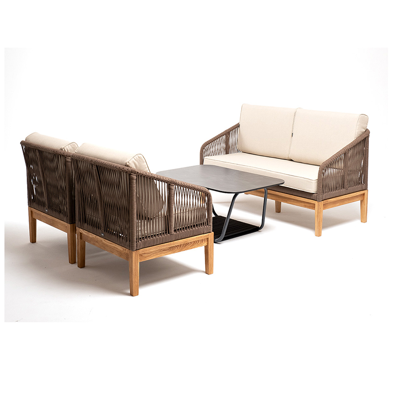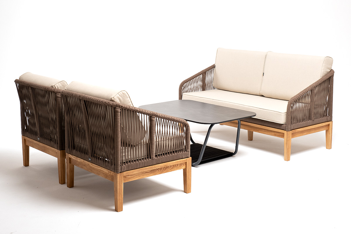 "Канны" диван 2-местный плетеный из роупа, основание дуб, роуп коричневый круглый, ткань бежевая 15052