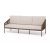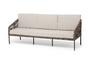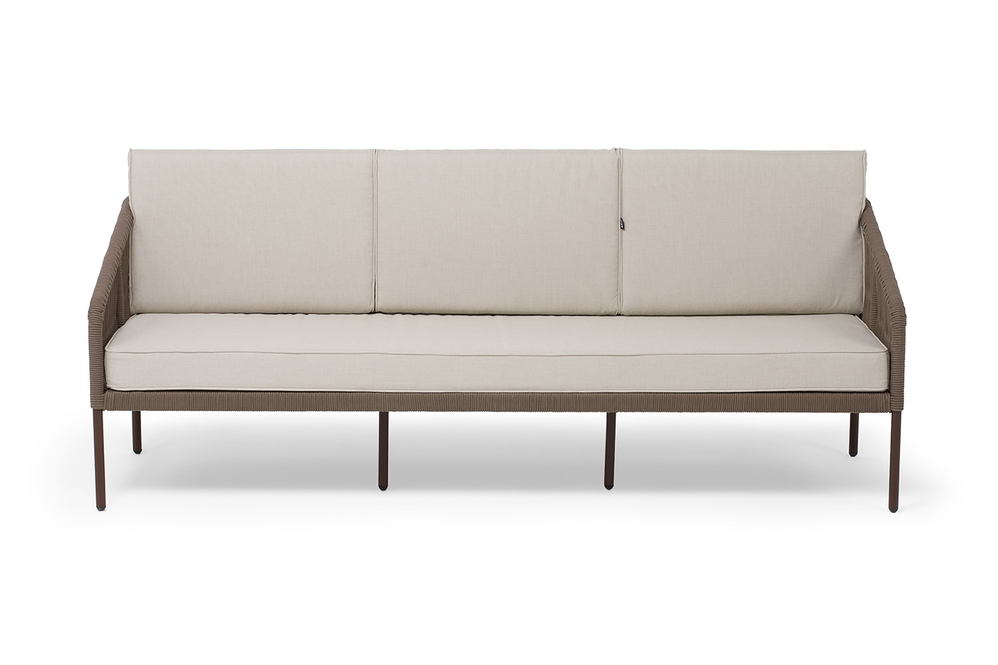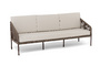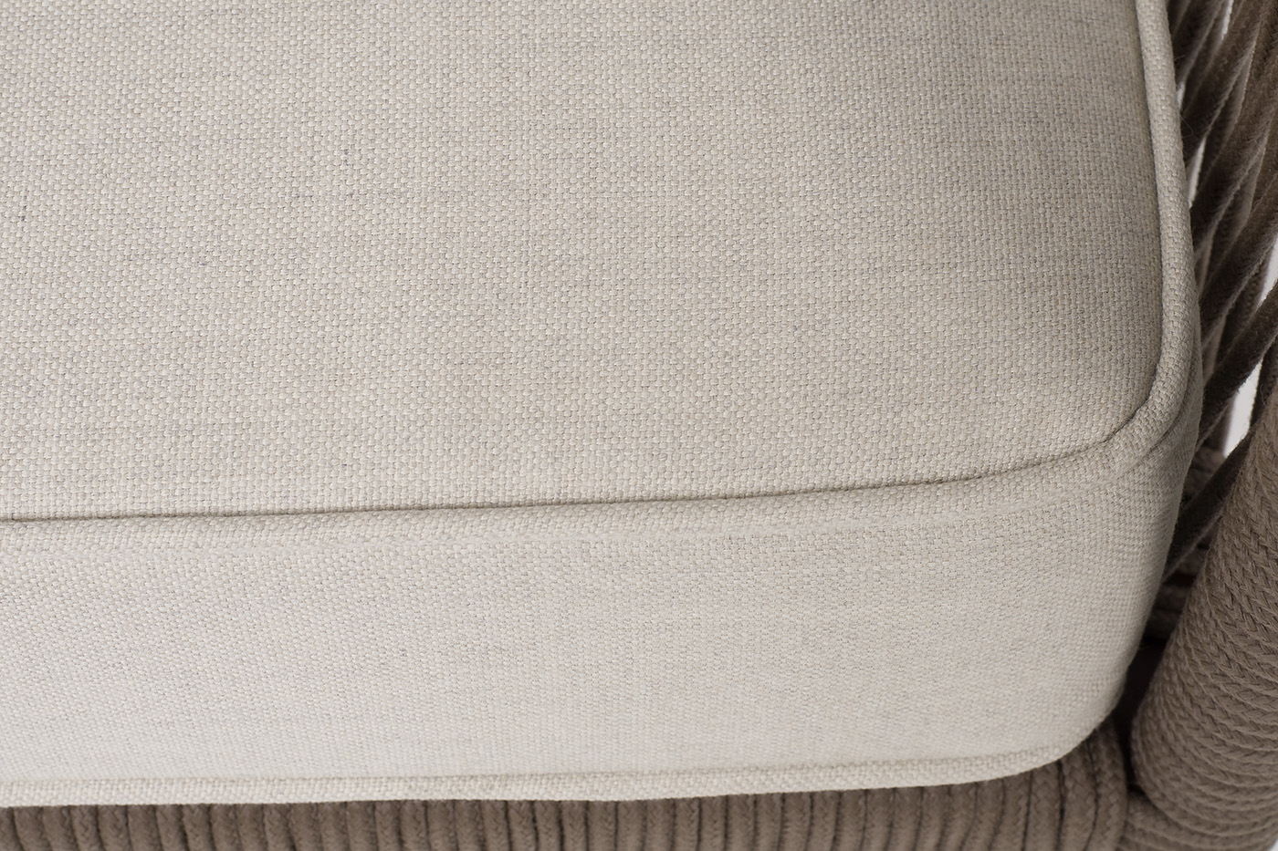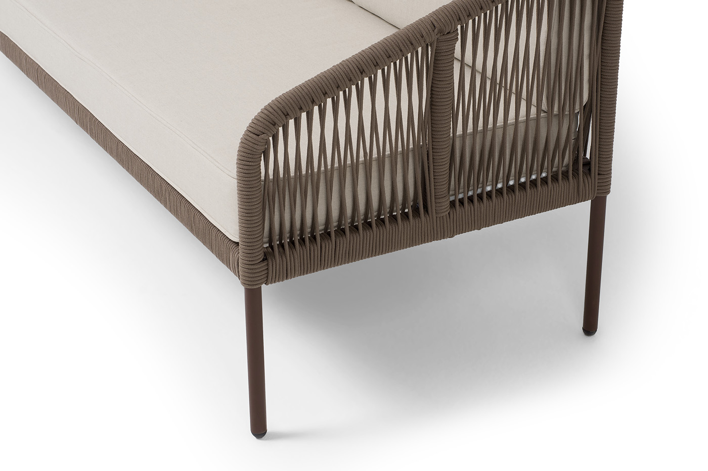 "Канны" диван 3-местный плетеный из роупа, каркас алюминий коричневый (RAL8016) муар, роуп коричневый круглый, ткань бежевая 15052