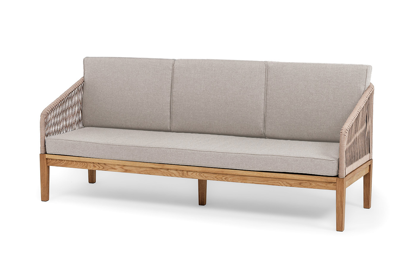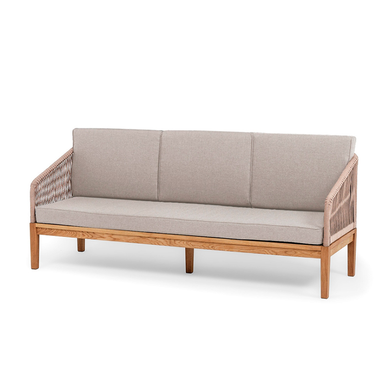 "Канны" диван 3-местный плетеный из роупа, основание дуб, роуп коричневый круглый, ткань бежевая