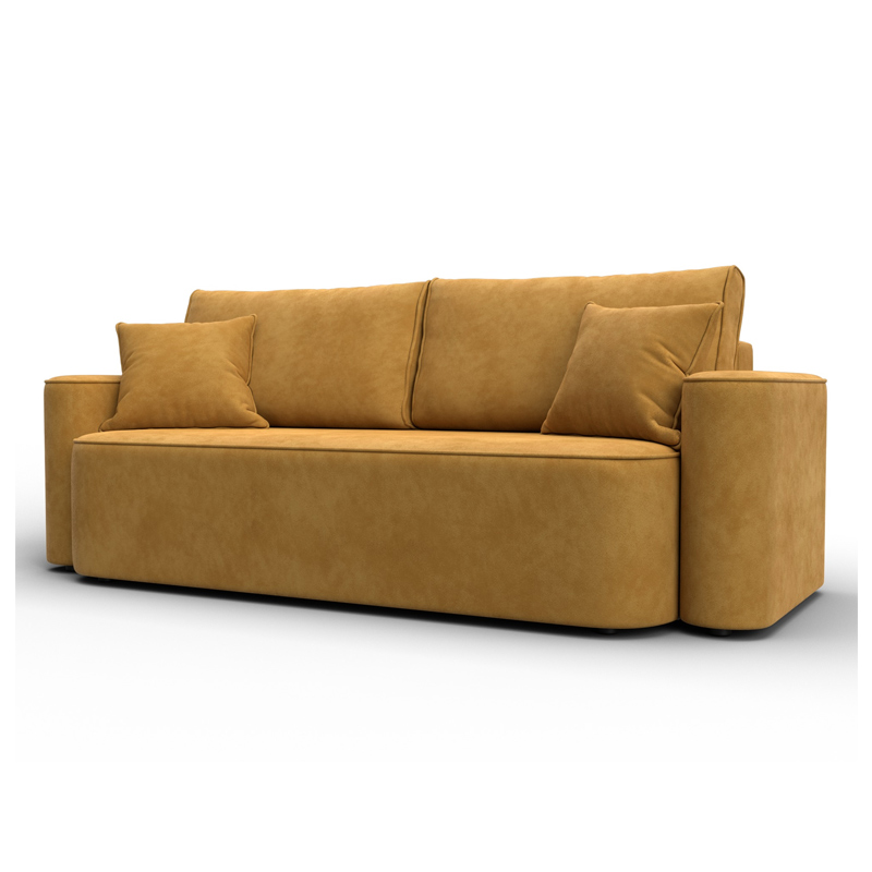 В сочетании с верхним слоем из пенополиуретана и блока независимых пружин наполнение дивана получается достаточно мягким, чтобы сделать посадку комфортной. Конструкция легко выдержит значительные нагрузки, сохраняя форму. Эксплуатация бесшумная. Верхняя мебельная ткань имеет эффектный внешний вид и отличается простотой в уходе. - Компактность