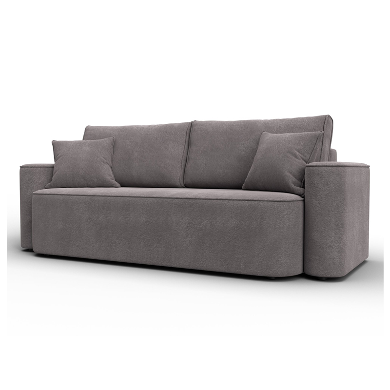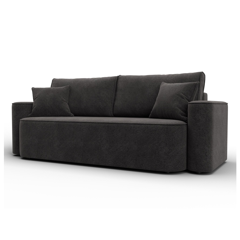 В сочетании с верхним слоем из пенополиуретана и блока независимых пружин наполнение дивана получается достаточно мягким, чтобы сделать посадку комфортной. Конструкция легко выдержит значительные нагрузки, сохраняя форму. Эксплуатация бесшумная. Верхняя мебельная ткань имеет эффектный внешний вид и отличается простотой в уходе. - Компактность