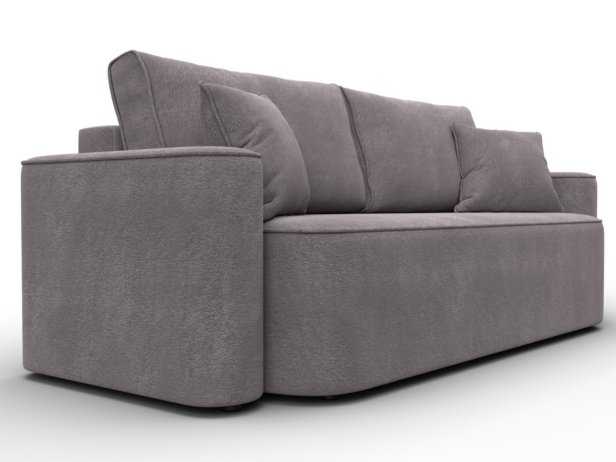 В сочетании с верхним слоем из пенополиуретана и блока независимых пружин наполнение дивана получается достаточно мягким, чтобы сделать посадку комфортной. Конструкция легко выдержит значительные нагрузки, сохраняя форму. Эксплуатация бесшумная. Верхняя мебельная ткань имеет эффектный внешний вид и отличается простотой в уходе. - Компактность