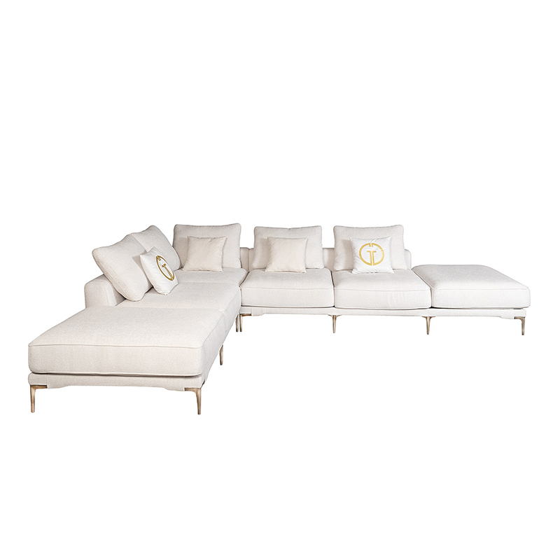 Запросить индивидуальное предложениеКомплект мебели №51 модульный Диван Тесоро(Tesoro) (левый угол). В состав комплекта входит: модуль прямой DO+P-1шт, модуль угловой правый DR+P- 1шт. Комплект выполнен в ткани из коллекции Garda Decor- шенилл Mobi-Ecru. В состав комплекта входят декоративные подушки: 45*45см в ткани Атмосфера(Atmosphera)010-2шт, 45*45см в ткани Атмосфера(Atmosphera)000-2шт с вышивкой эмблема в цвет золото. Металлические опоры 18см, цвет бронза. Габариты комплекта: ширина- 2900мм, глубина-3800мм, высота- 900мм. Глубина сиденья- 750мм, высота посадочного места- 440мм.