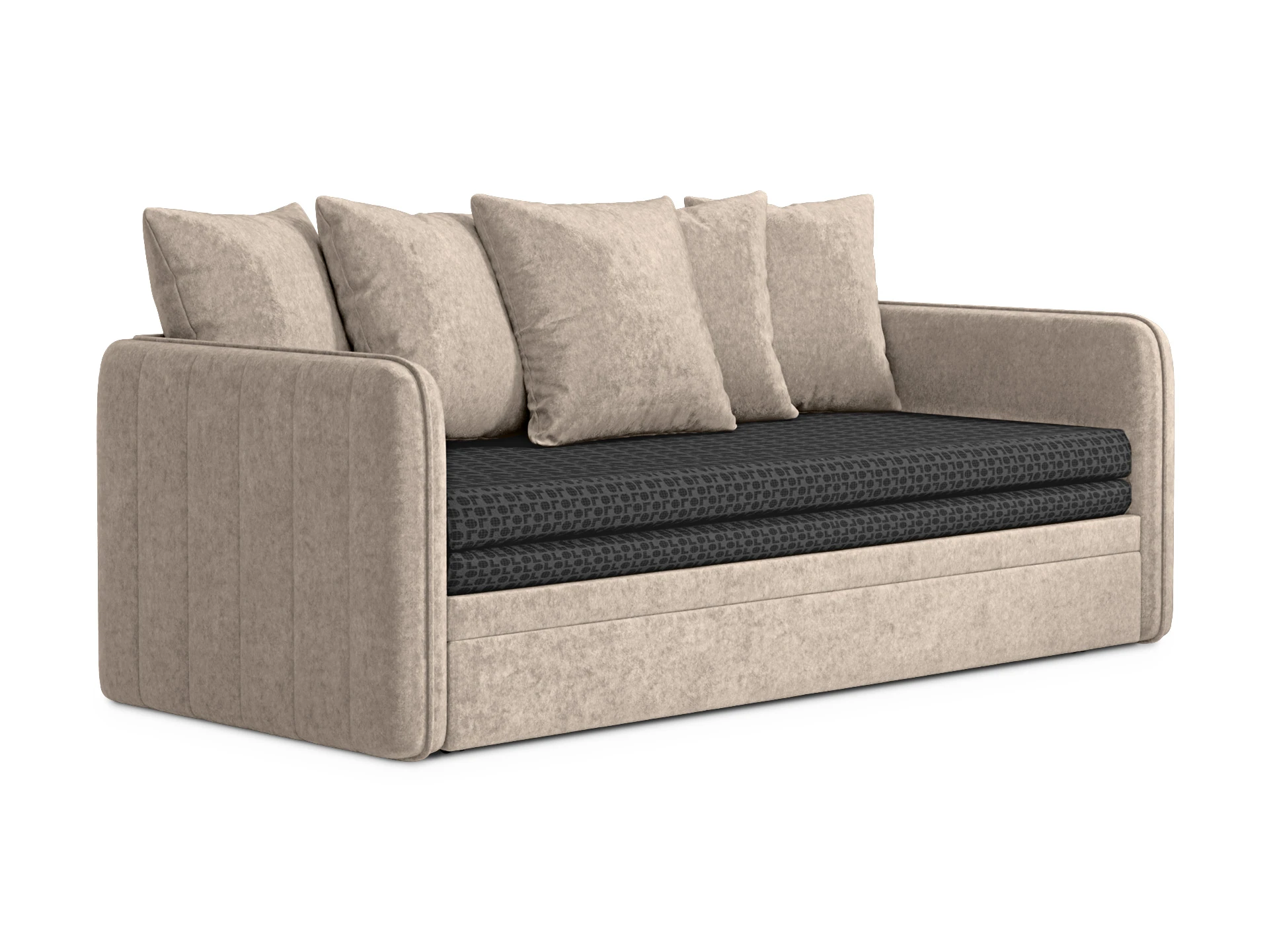 Запросить индивидуальное предложениеTodi — функциональная кушетка-кровать с двумя опциональными модулями. В собранном виде — это компактный диван, а в разложенном — спальное место размером 2000х1590х100 мм. Механизм трансформации — выкатной: при раскладывании достаточно выкатить вспомогательную секцию из-под сиденья и установить на нее блок ламелей. Конструкция проста и надежна для ежедневного использования. Также есть второй выкатной модуль, который можно использовать в качестве емкости для хранения или дополнительного спального места. Кушетка Todi — идеальный выбор для пространств средних и компактных размеров. Она гармонично впишется в гостиную, детскую, спальню, кухню. Каркас из деревянного бруса, в основе — породы хвойных: ель и сосна, влагостойкая березовая фанера. Мебель из этих материалов экологична, надежна и долговечна.