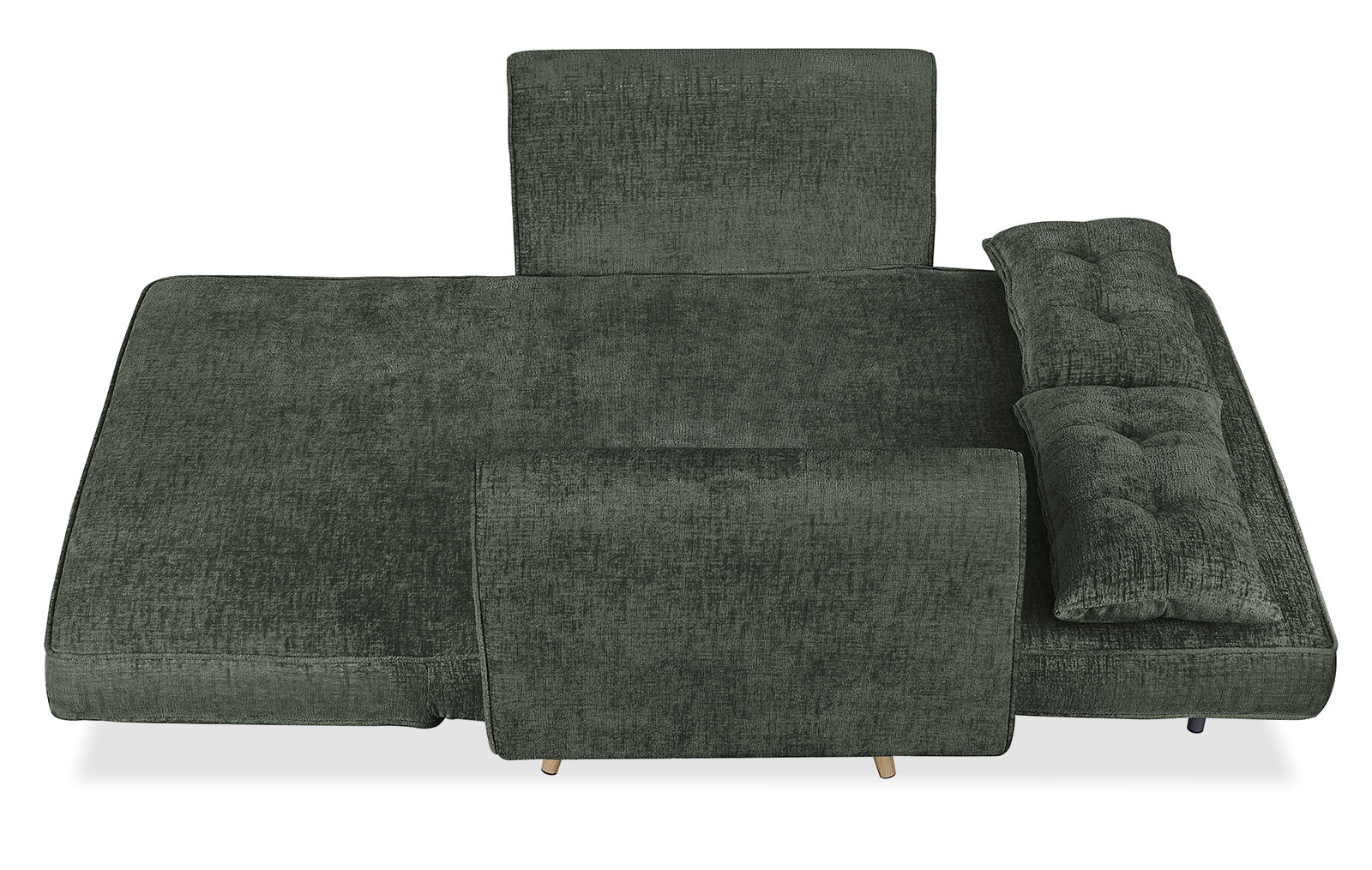 Механизм трехуровневый трансформер позволяет легко и быстро разложить диван, превращая его в удобное спальное место. Дополнительные металлические опоры, обеспечивающие поддержку в разложенном виде, прячутся в специальные карманы на молниях.