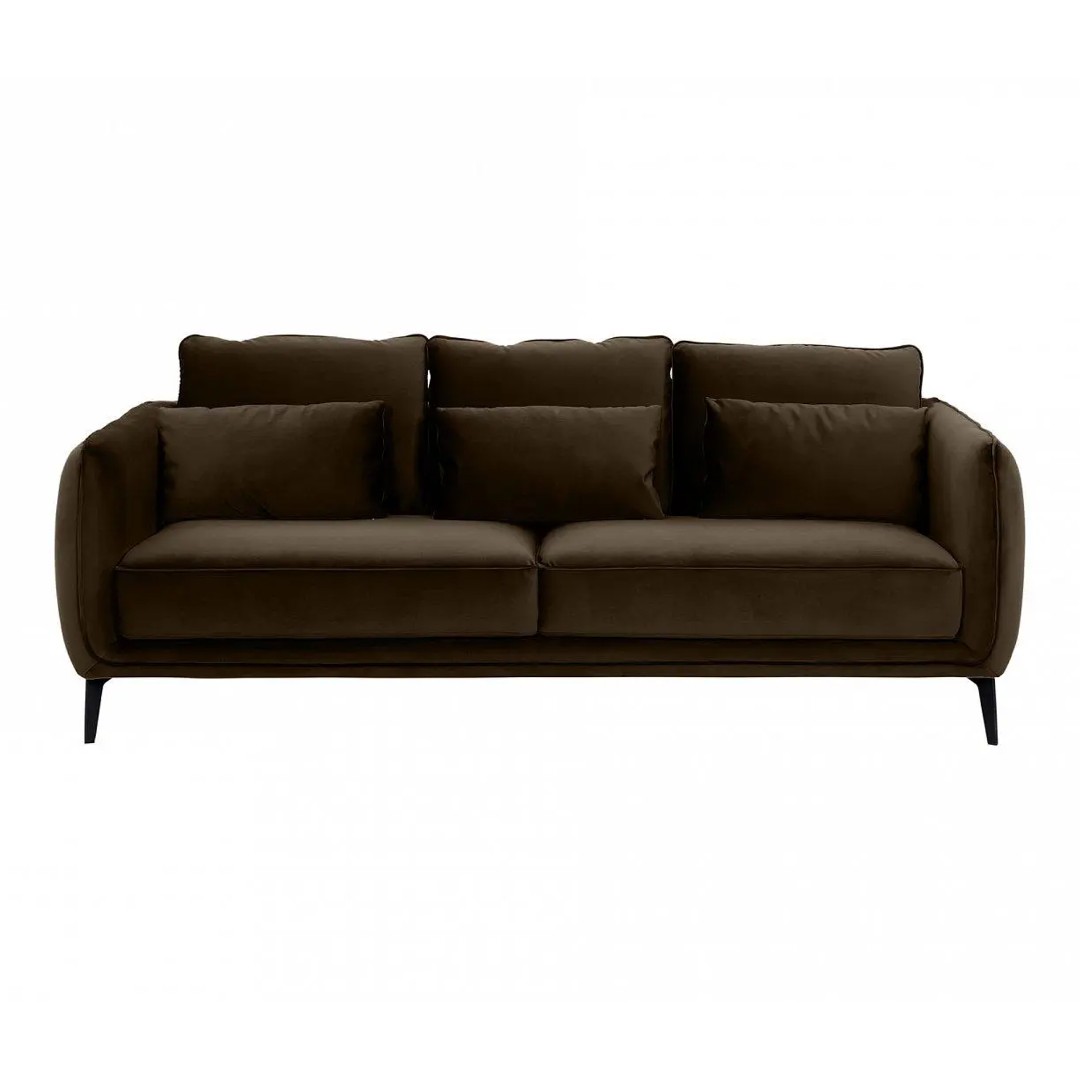 Элегантный диван с комфортной посадкой отличается безупречным стилем. Гармония лаконичных форм и мягких элементов. Сдержанный дизайн отлично впишется как в яркий интерьер, так и в помещение со строгой обстановкой. Спинка и подлокотники расположены на одном уровне. Такая конструкция создаёт границы уединённого пространства и отвечает за безмятежный отдых. Идеальным дополнением которого являются упругие подушки спинки.В основе каркаса – брус хвойных пород. Что обеспечивает надёжность и долгий срок службы дивана. За устойчивость отвечают металлические опоры высотой 150 мм, окрашенные эмалью. Диван укомплектован шестью подушками, которые входят. Имеют силиконовые подпятники, поэтому не оставят «следов» на напольном покрытии. Ножки смотрятся изящно. Благодаря им, легко делать уборку под основанием дивана.Подушки сиденья состоят из пружинного блока, войлочного настила, нескольких слоев пенополиуретана. Материал нового поколения гипоаллергенен и экологически безопасен. Его ячеистая структура обладает повышенной прочностью и «анатомической» памятью. Не проминается, моментально восстанавливает форму.Основной лицевой чехол несъёмный, чехлы подушек – съёмные. По периметру диван декорирован кантом, который придаёт завершённость его внешнему виду. Материал обивки – ткань с бархатной текстурой. Устойчива к истиранию, выпадению ворса. Смотрится благородно и подчёркивает уникальность модели. Диван Amsterdam – идеальное сочетание высокого качества материалов и эргономичности. Привнесёт в ваш дом чувство расслабления и уюта.