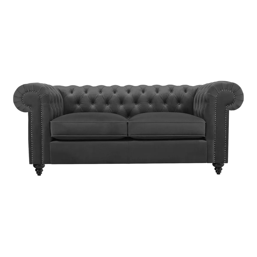 Линейка диванов «Chester Classic» представлена классическими моделями в английском стиле на ножках. Изделие может быть выполнено в натуральной коже или в другой обивке на ваш выбор. Отличительная черта диванов «Chester Classic» — спинка и подлокотники находятся на одном уровне и имеют одинаковую толщину. Благодаря наклону мягкой спинки, «Chester Classic» считается диваном повышенной комфортности. Подлокотники имеют форму свитков. Подобные элементы часто встречаются в архитектуре барокко. Они привносят экспрессию, ощущение королевского стиля. Ножки дивана выполнены из дерева, имеют форму завитка, их цвет может быть коричневым или чёрным — на ваш выбор.||Представленная модель — двухместный диван. Обивка — качественный полиэстер. Не впитывает запахи, гипоаллергенный, быстро восстанавливает форму. Диван можно разместить вдоль стены, а можно поставить отдельным островком. Он замечателен. Со всех сторон. Основательный каркас из деревянного бруса, комфортные подушки сиденья с независимым пружинным блоком, глубокая каретная стяжка в технике «капитоне» на спинке и подлокотниках. Которые дополнительно украшены декоративными молдингами, придающими изделию выразительный и завершённый вид. «Chester Classic» - это культовый дизайн, респектабельность, высокое качество.