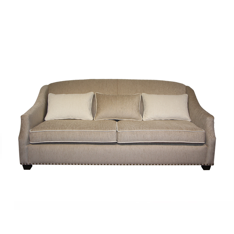 Уютный диван в классическом стиле обладает удобной зоной посадки с широкими сиденьями и мягкими декоративными подушками. Низ и боковины дивана декорированы металлическими заклепками. Данный товар выполнен в ткани 3 категории.