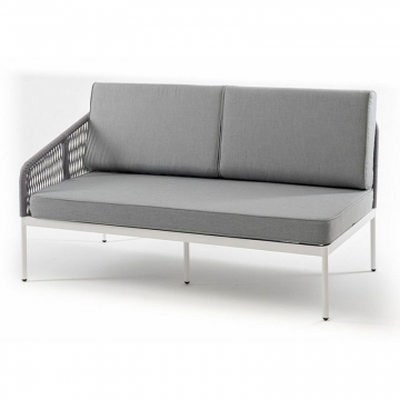 "Канны" правый модуль плетеный из роупа, каркас алюминий светло-серый (RAL7035) шагрень, роуп серый круглый, ткань серая 017