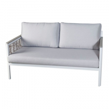 "Сан Ремо" диван 2-местный плетеный из роупа, каркас алюминий белый, роуп бежевый, ткань бежевая