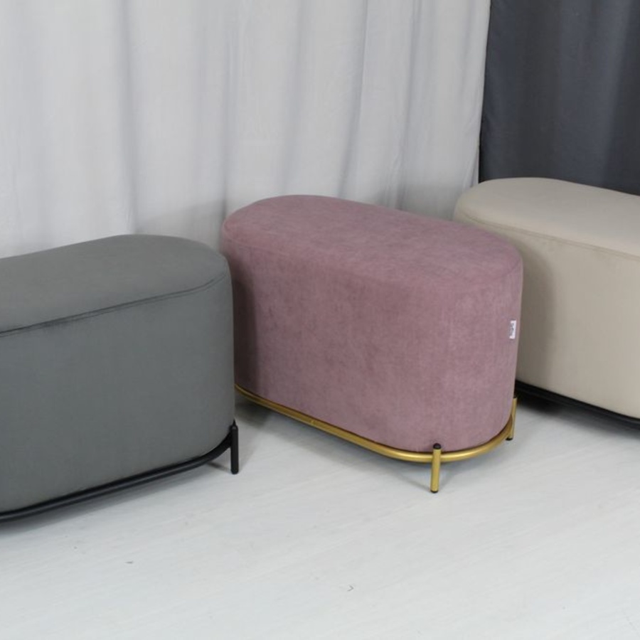 Нежный пуф овальной формы добавит уюта и разбавит Ваш интерьер. Главное украшение – тонкие ножки из металла. Надежность металла и мягкость ткани прекрасно сочетаются в готовом исполнении пуфа.