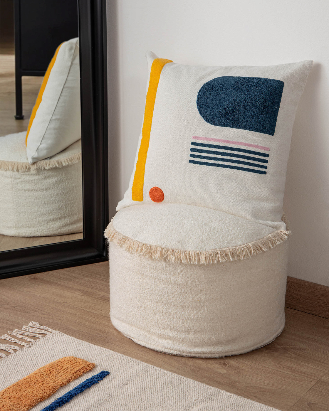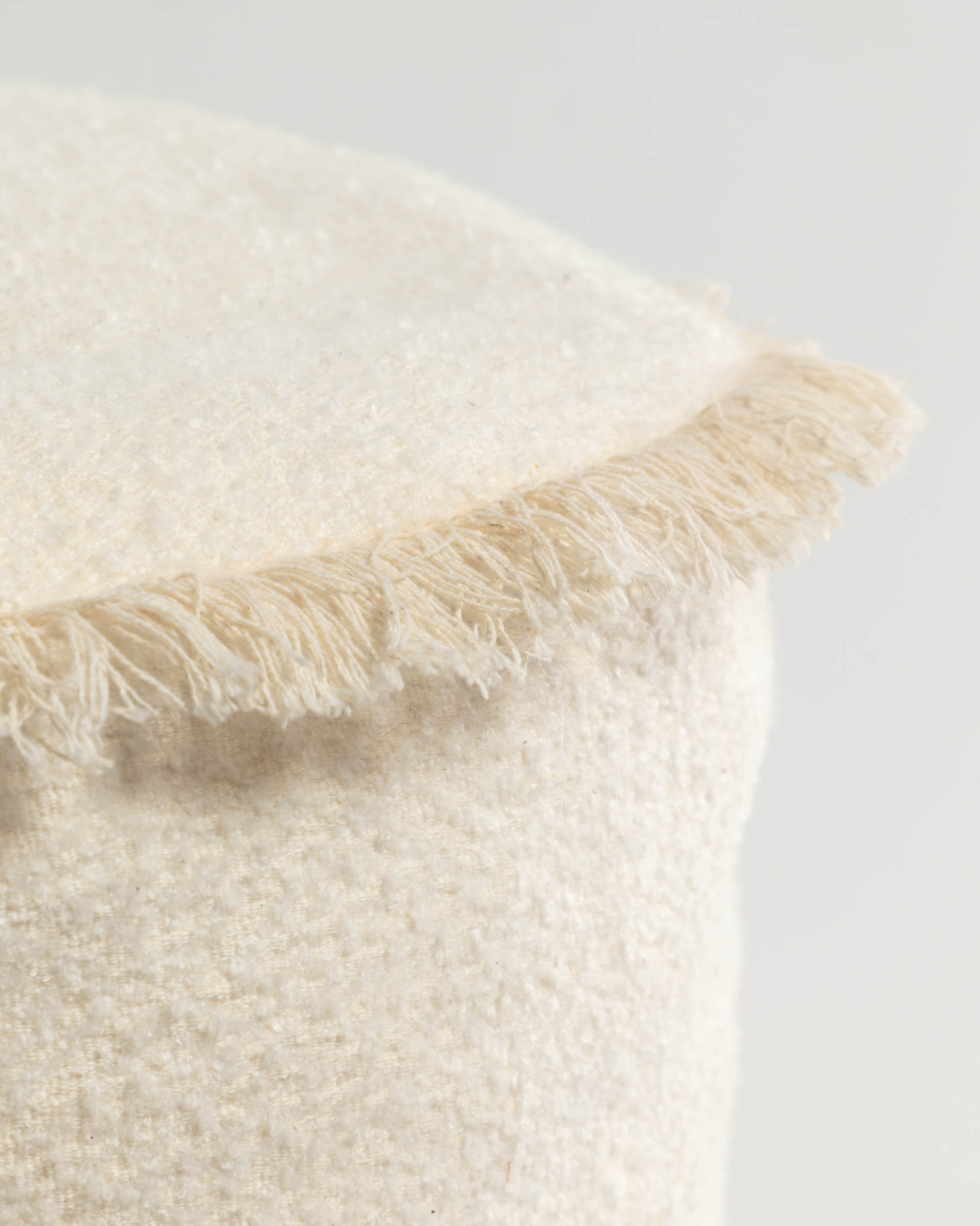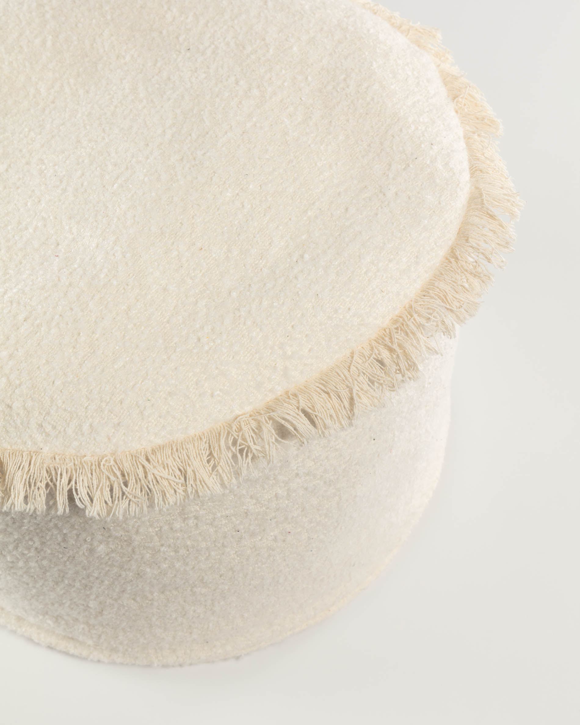 Он полностью сделан из натурального хлопка, благодаря чему безопасен для детского использования. Кроме этого, пуф отлично подходит для интерьера детской комнаты за счет нежного светло-бежевого цвета и декора в виде бахромы.