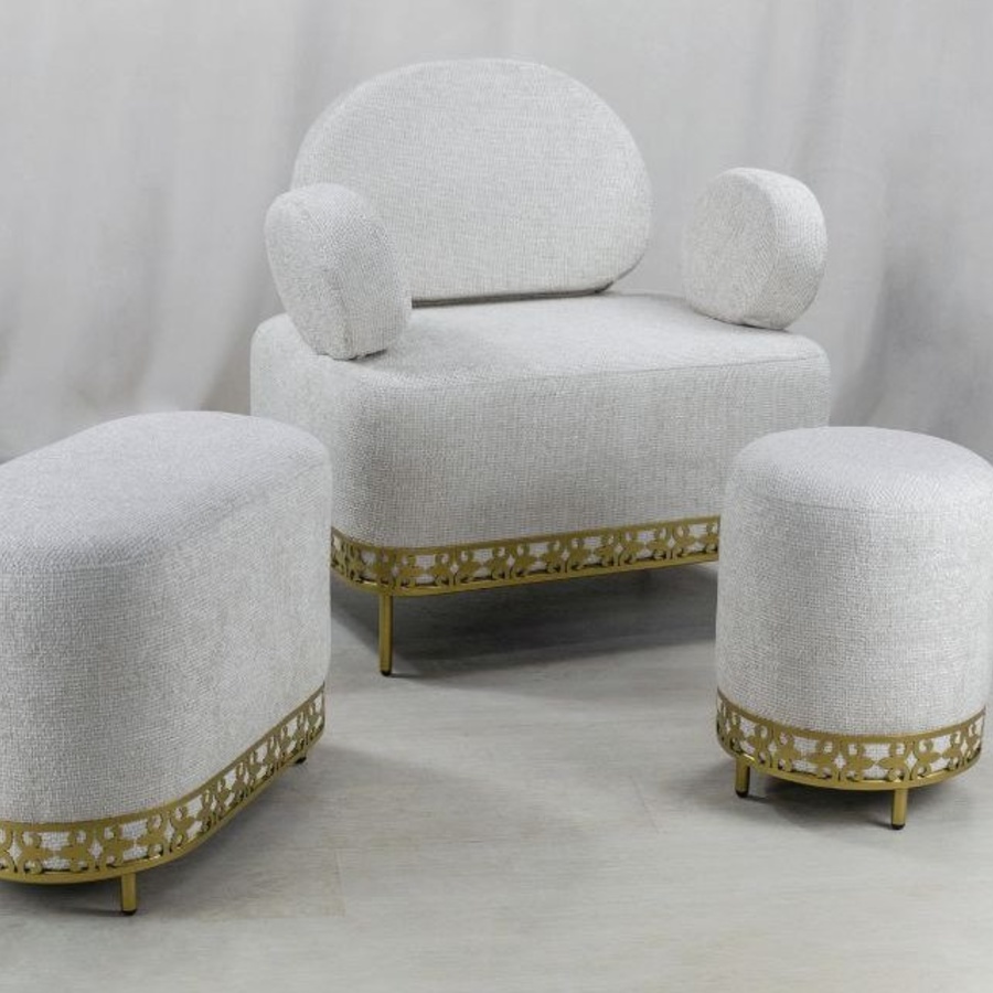 Нежный пуф овальной формы добавит уюта и разбавит Ваш интерьер. Надежность металла и мягкость ткани прекрасно сочетаются в готовом исполнении пуфа.