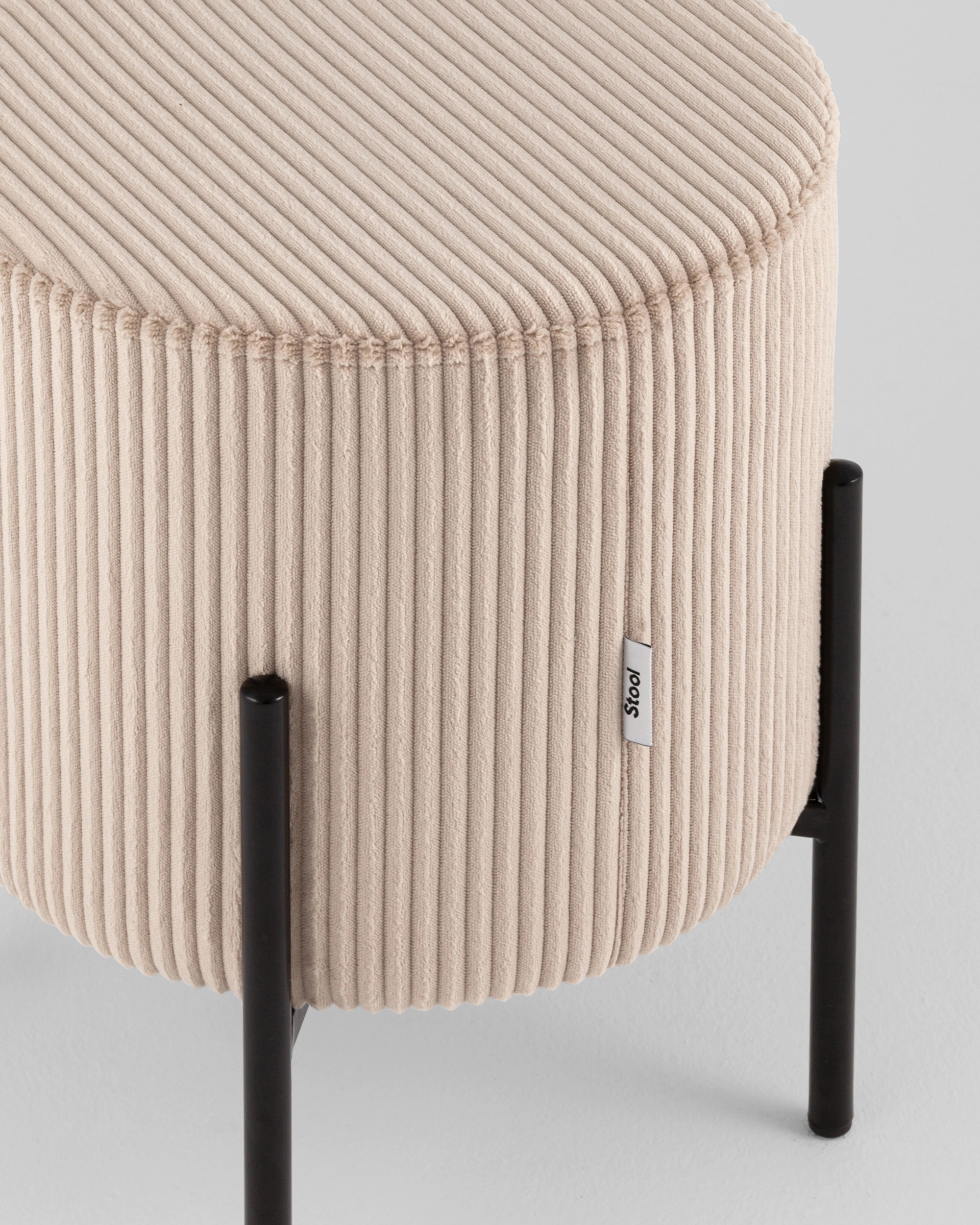 Запросить индивидуальное предложениеСтильный круглый бежевый пуф на металлических ножках