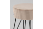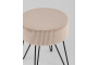 Мягкая обивка выполнена из износостойкого рельефного велюра, тактильно приятный и долговечный материал. Изогнутые металлические ножки высотой 27 см дополняют дизайн и придают пуфику изящный вид. Подпятники в основании ножек делают пуф более устойчивым и предотвращают скольжение.