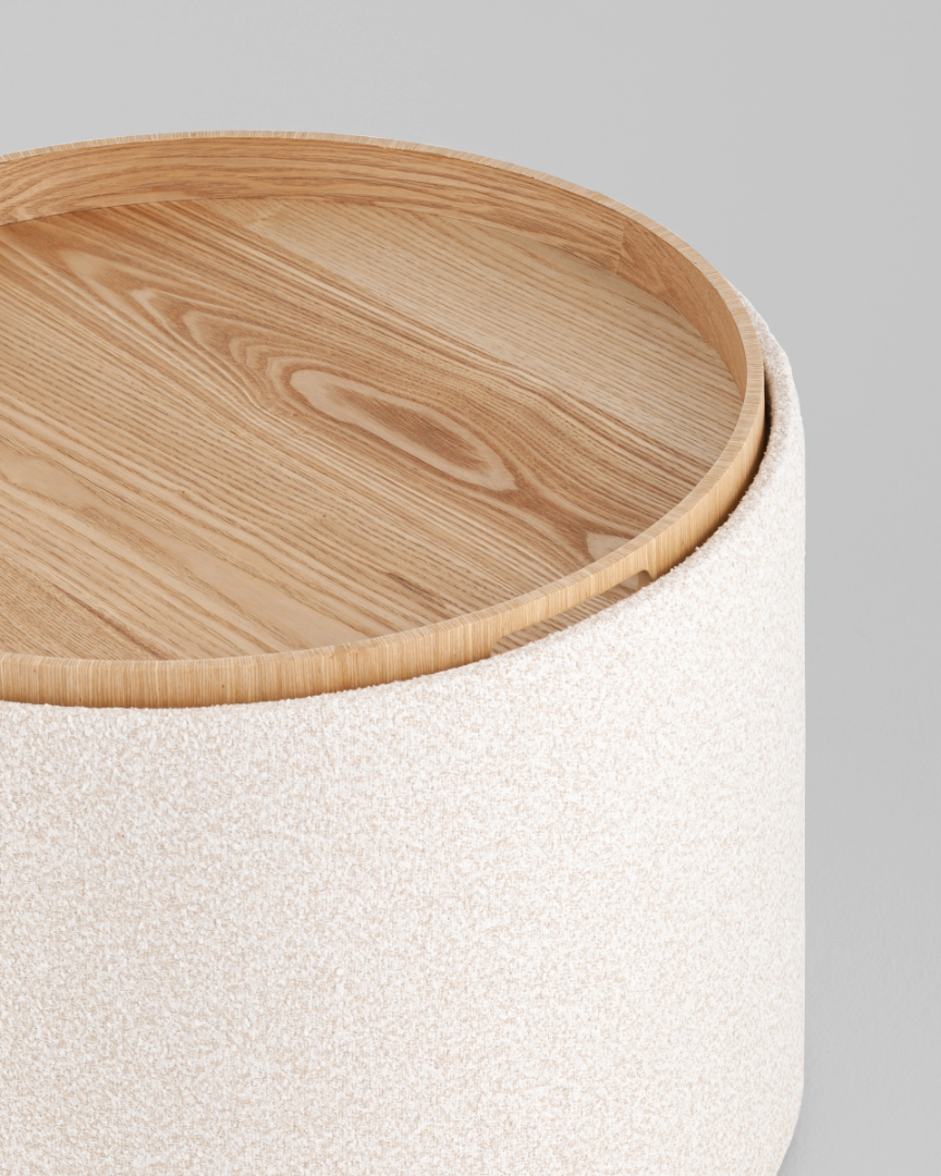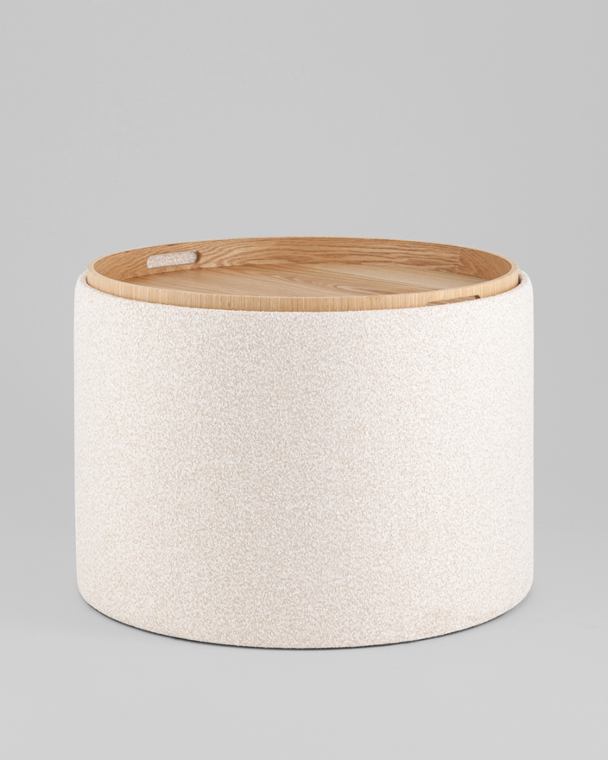 Запросить индивидуальное предложениеМягкий пуф с ящиком станет незаменимым украшением интерьера. Он не только удобный, но и функциональный. Благодаря двухсторонней крышке, пуф можно трансформировать в журнальный столик. Столешница выполнена из светлого дерева с бортиками по краям и вырезными ручками для удобства, и безопасности при использовании. Крышка пуфика полностью съемная и при необходимости её можно использовать как поднос. Полезное дополнение - ящик для хранения различных мелочей, внутри обит тканью. Компактный и вместительный, такой пуфик наполнит пространство особым уютом и теплом. Подойдет для любого интерьера - как в классическом стиле, так и в современном.