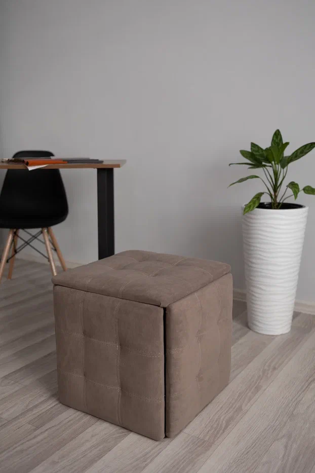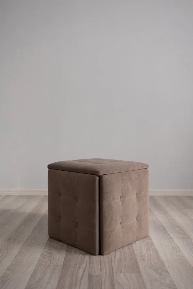 Запросить индивидуальное предложениеПуф-трансформер 5 в 1 – динамика пространства и безупречный комфорт Идеальный баланс функциональности, эстетики и эргономики. Этот пуф-трансформер с легкостью адаптируется под ваши потребности, мгновенно превращаясь в пять полноценных табуретов. Компактность и продуманная конструкция делают его незаменимым элементом современного интерьера, где ценится комфорт без лишних деталей. Мягкие сиденья с утолщенным поролоном обеспечивают удобство, а премиальная ткань с эффектом «антикоготь» приятна на ощупь и устойчива к износу. Прочный цельносварной каркас из металлического профиля выдерживает значительные нагрузки, сохраняя стабильность конструкции. Регулируемые и пластиковые опоры защищают напольное покрытие и гарантируют устойчивость на любой поверхности. Лаконичные формы, универсальный оттенок и продуманная геометрия делают этот пуф не просто мебелью, а архитектурным элементом пространства.