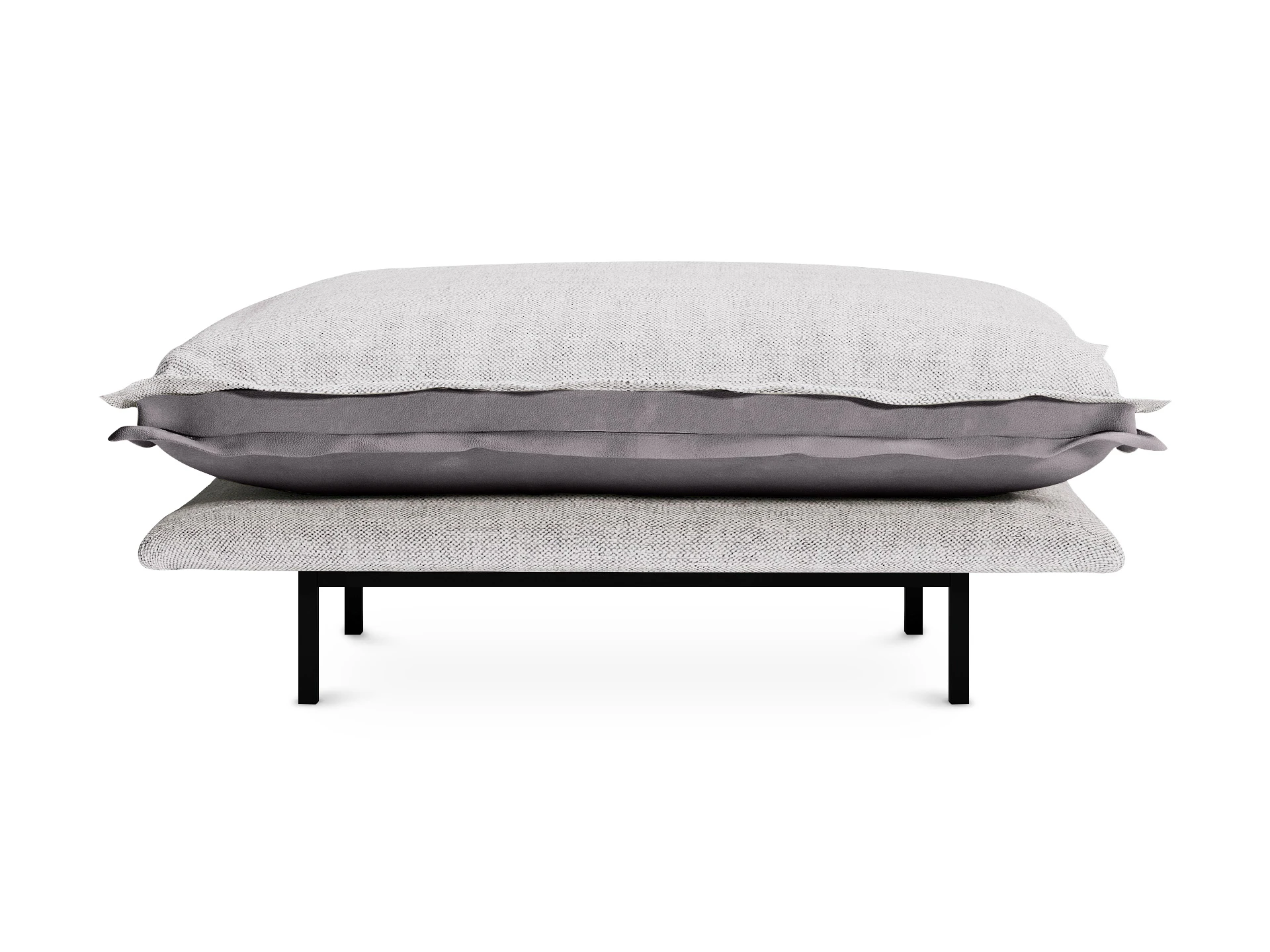 Опоры — металлические, окрашены черной матовой эмалью, защищены пластиковыми подпятниками. Высота ножек — 175 мм, что позволяет проводить уборку, не передвигая пуф.