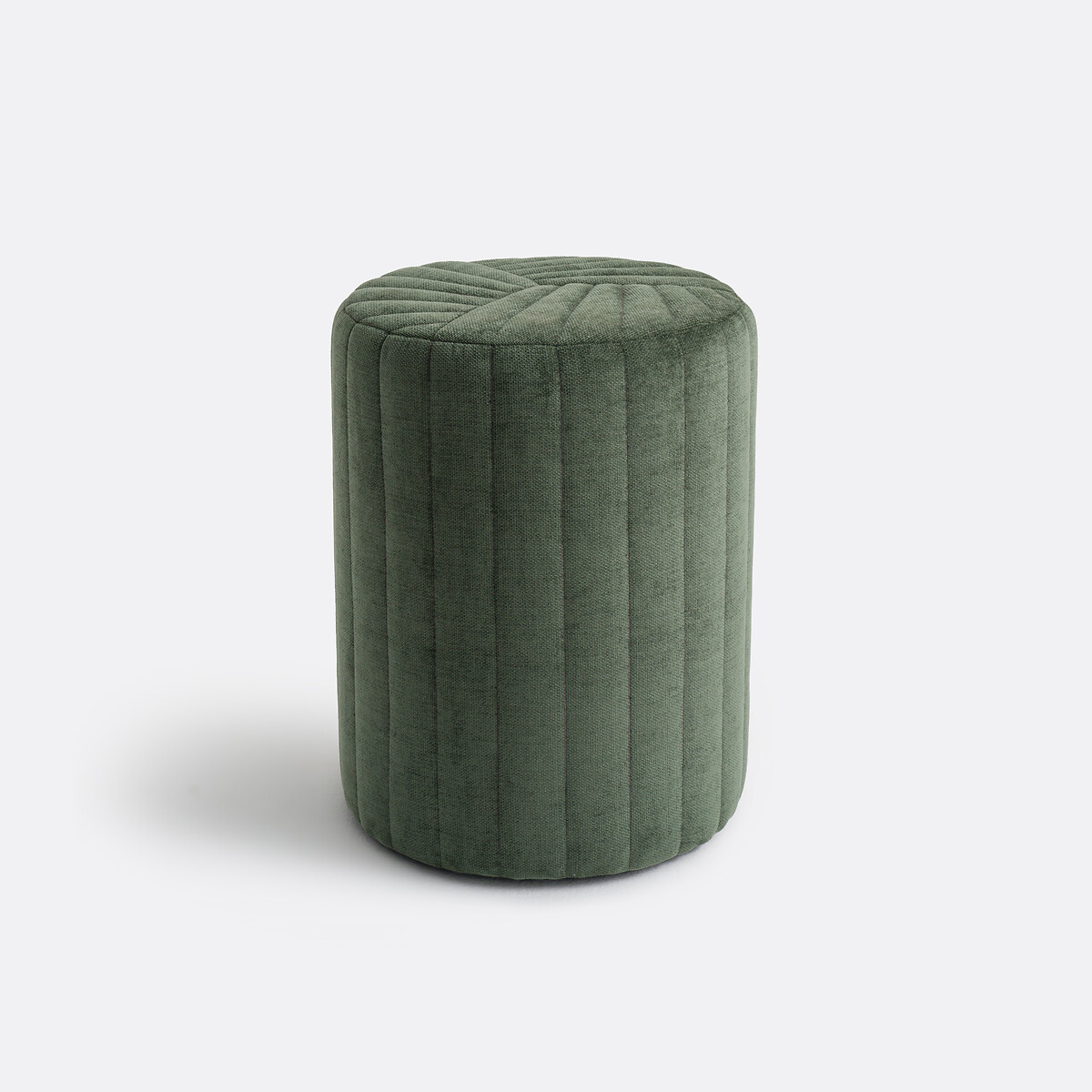 Круглый пуф в обивке из фактурной ткани с прострочкой Jimi единый размер зеленый