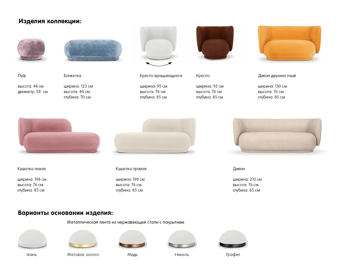Запросить индивидуальное предложениеКоллекция диванов, кресел, кушеток, пуфов, дизайн которых сфокусирован на округлых мягких формах. Это и дань актуальным трендам, и стремление к позитивному «обволакивающему» пространству, располагающему к уютному отдыху. Смелые объемы, плавные линии привнесут в интерьер динамику, свежесть, пластичность. Закругленные элементы, фактурные обивки, естественные оттенки создают атмосферу комфорта и дружелюбного притяжения. Высокие спинки, плавно перетекающие в подлокотники, обеспечивают эргономичную поддержку и чувство безопасности, уединения.