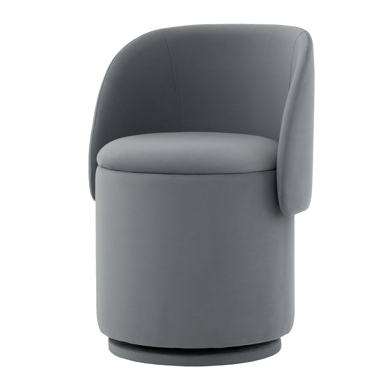 Таунсвилл легко превращается из стула в пуф: достаточно опустить спинку вниз, и вы получаете полноценное мягкое сиденье без выступающих элементов. Благодаря скрытому поворотному механизму изделие вращается на 360° — для этого достаточно слегка оттолкнуться ногами. Это делает модель удобной не только для отдыха, но и для повседневного использования, например, за туалетным столиком или в прихожей.