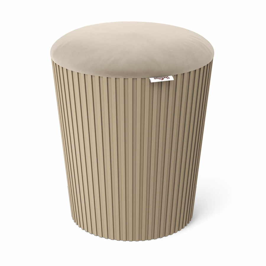 Сиденье пуфика выполнено из высококачественного микровелюра, в качестве наполнителя используется поролон. Основание изготовлено из полипропилена с армирующими добавками, что обеспечивает повышенную жёсткость, устойчивость и надёжность конструкции.