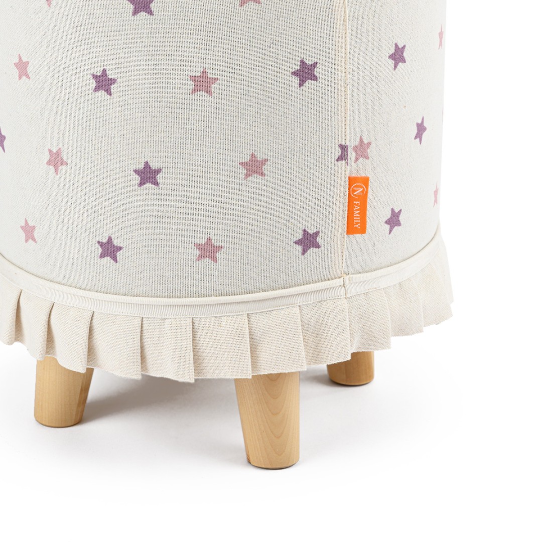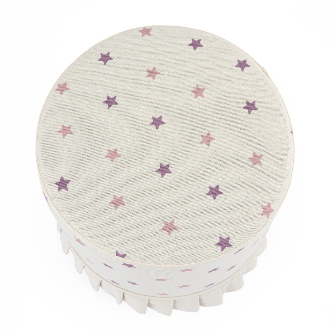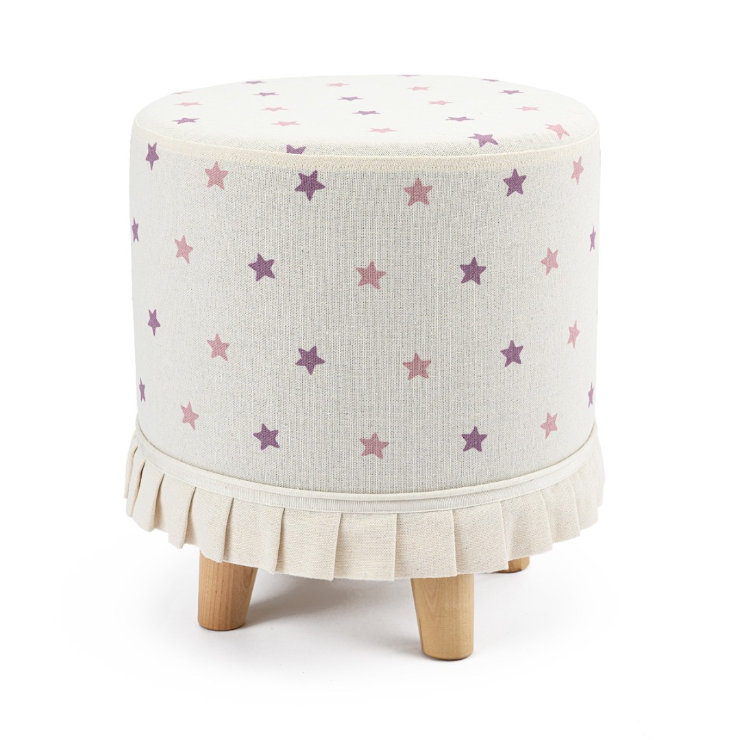 Запросить индивидуальное предложениеПуф на ножках из коллекции My Little Bunny. Чехол съемный, сшит из двунитки с оборкой и декорирован принтом из разноцветных звезд.