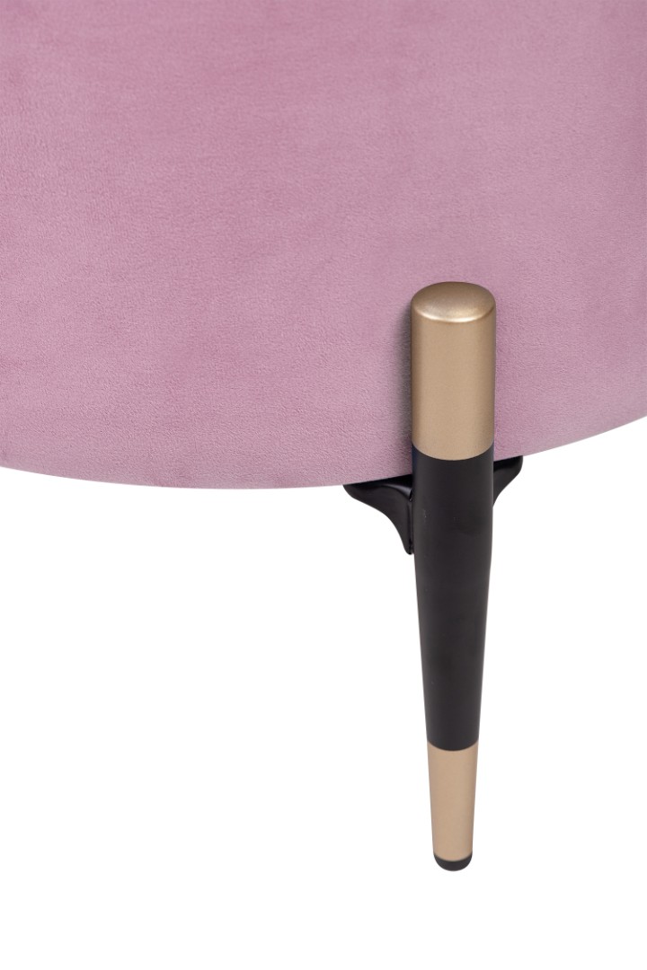 Запросить индивидуальное предложениеКруглый розовый пуф Lutor из мягкого велюра зеленого цвета. Особого внимания заслуживают ножки: изящные, конусовидные, чёрные — с деликатной золотой окантовкой внизу. Именно эта деталь создаёт элегантный контраст с нежно-розовой обивкой и придаёт пуфу законченный, дизайнерский вид. Легко впишется в любой интерьер.