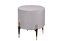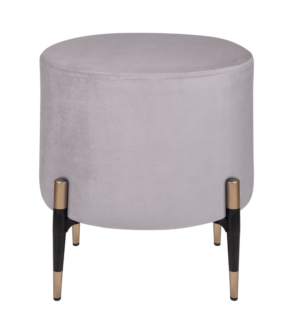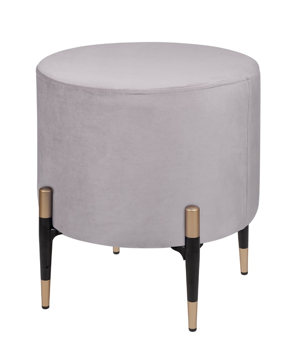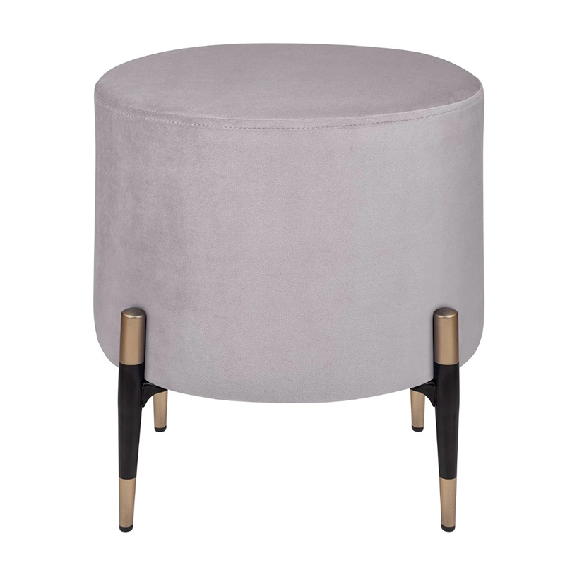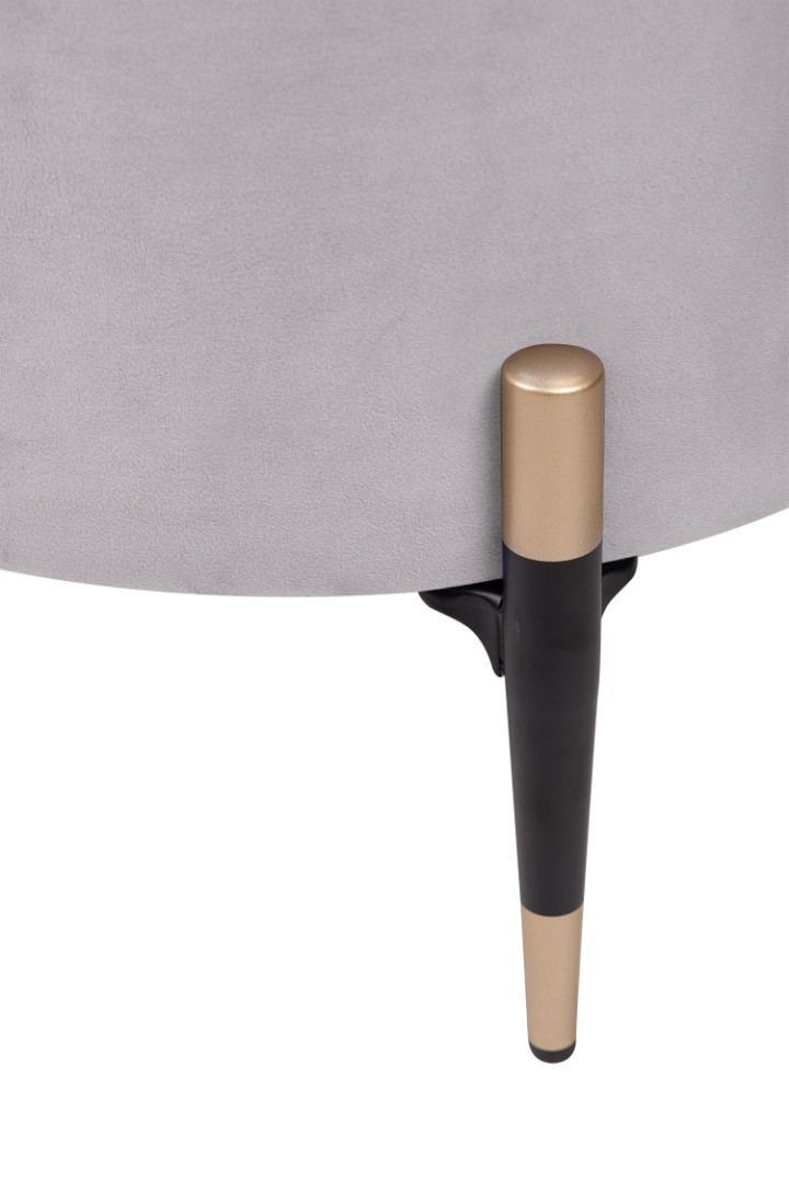 Запросить индивидуальное предложениеКруглый серый пуф Lutor из мягкого велюра серого цвета. Особого внимания заслуживают ножки: изящные, конусовидные, чёрные — с деликатной золотой окантовкой внизу. Именно эта деталь создаёт элегантный контраст с нежно-розовой обивкой и придаёт пуфу законченный, дизайнерский вид. Легко впишется в любой интерьер.