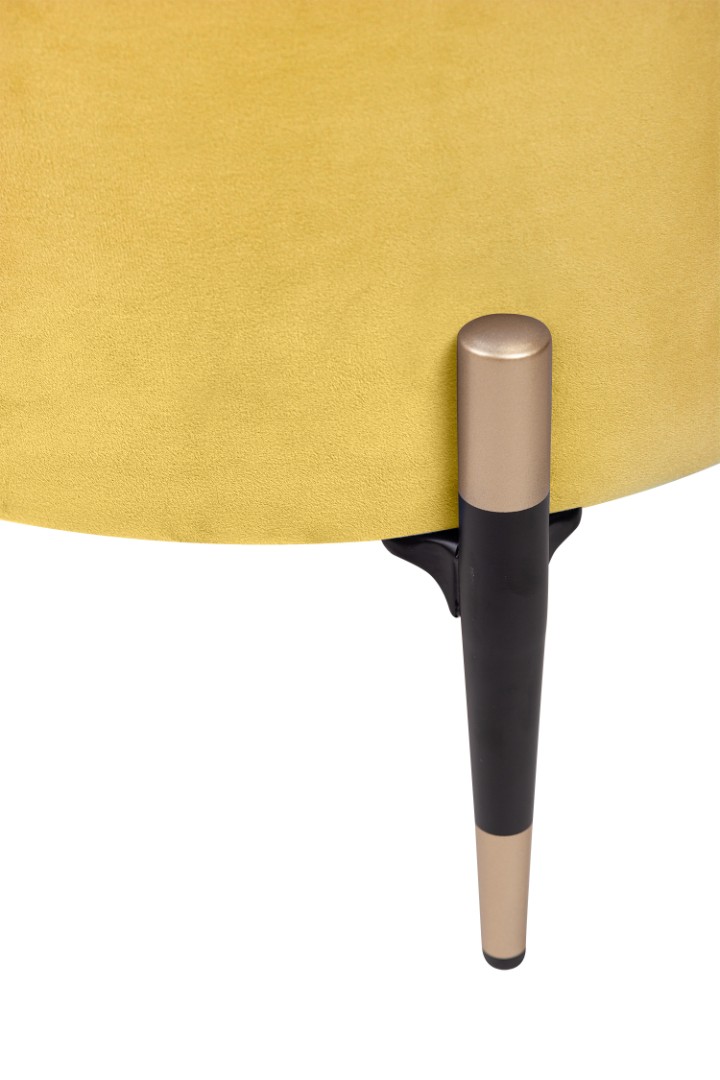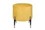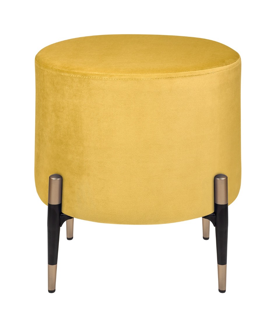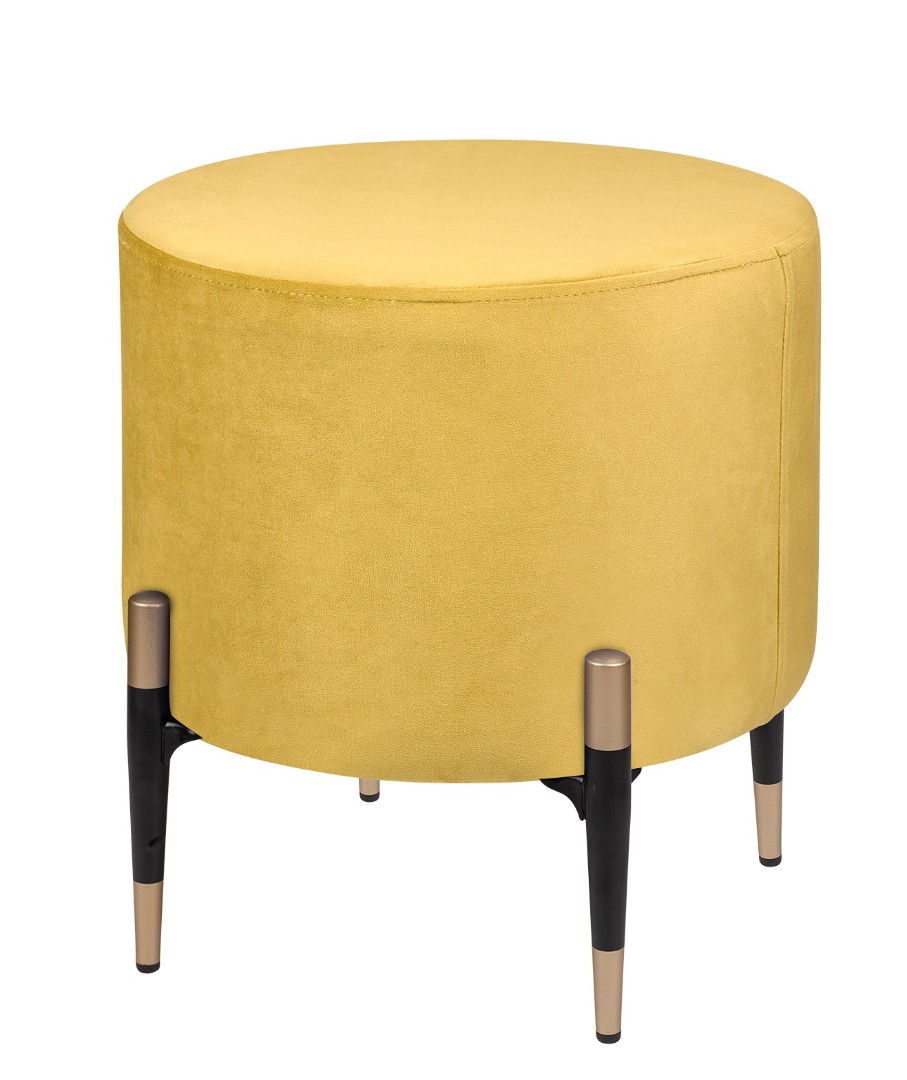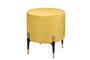 Запросить индивидуальное предложениеКруглый желтый пуф Lutor из мягкого велюра желтого цвета. Особого внимания заслуживают ножки: изящные, конусовидные, чёрные — с деликатной золотой окантовкой внизу. Именно эта деталь создаёт элегантный контраст с нежно-розовой обивкой и придаёт пуфу законченный, дизайнерский вид. Легко впишется в любой интерьер.