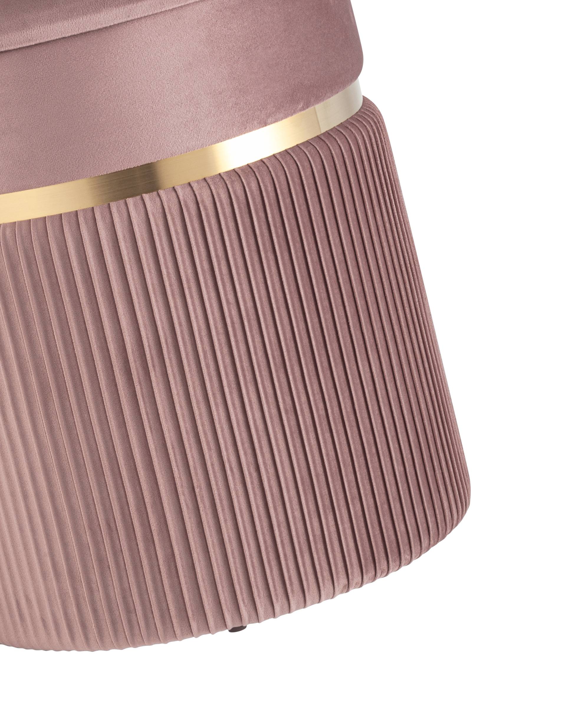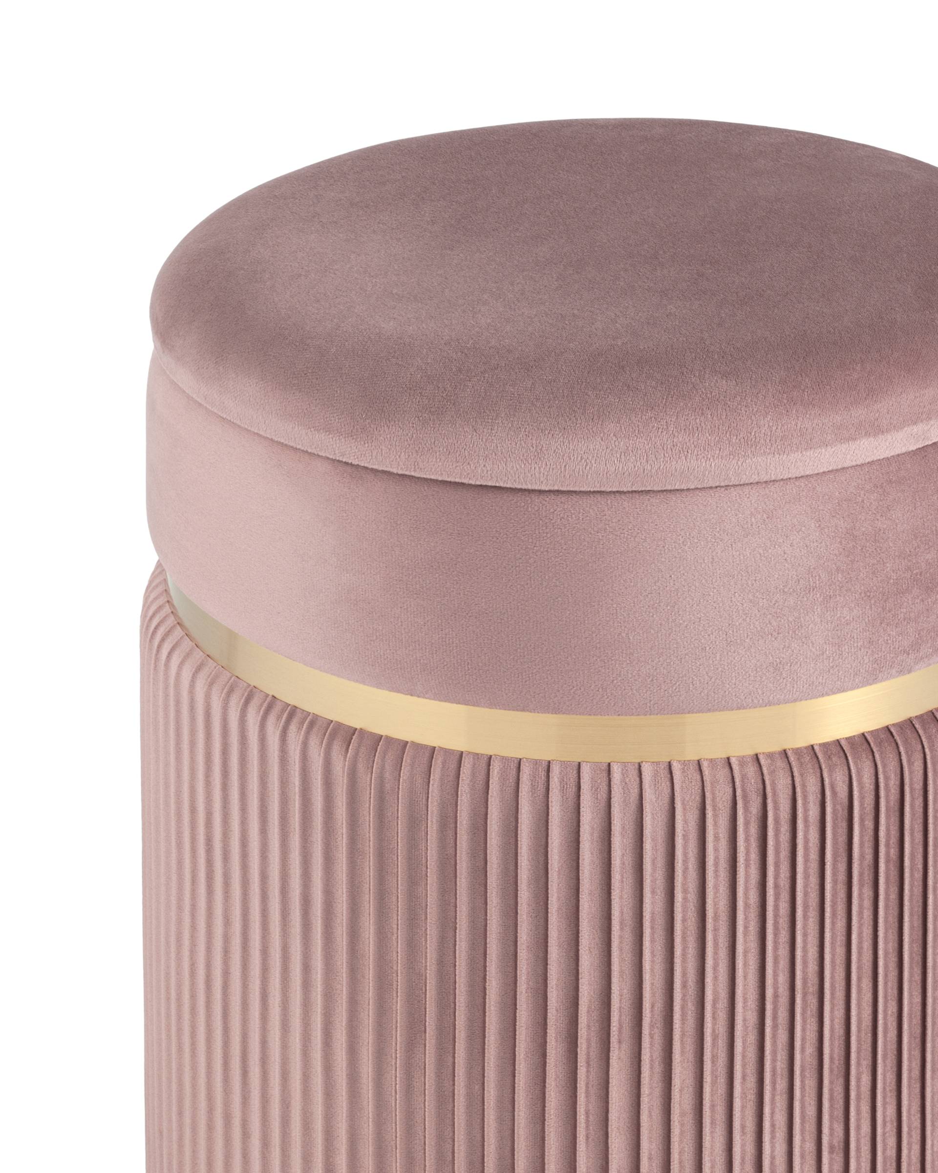 Запросить индивидуальное предложениеЛаконичная модель пуфа в обивке из мягкого велюра, которая дополнит интерьер вашего дома. Обивка красиво украшена декоративными оборками и металлическим ободком в золотом цвете. Под сиденьем имеется ящик для хранения различных мелочей. В основании предусмотрены специальные подпятники, которые делают пуф более устойчивым и предотвращают скольжение.