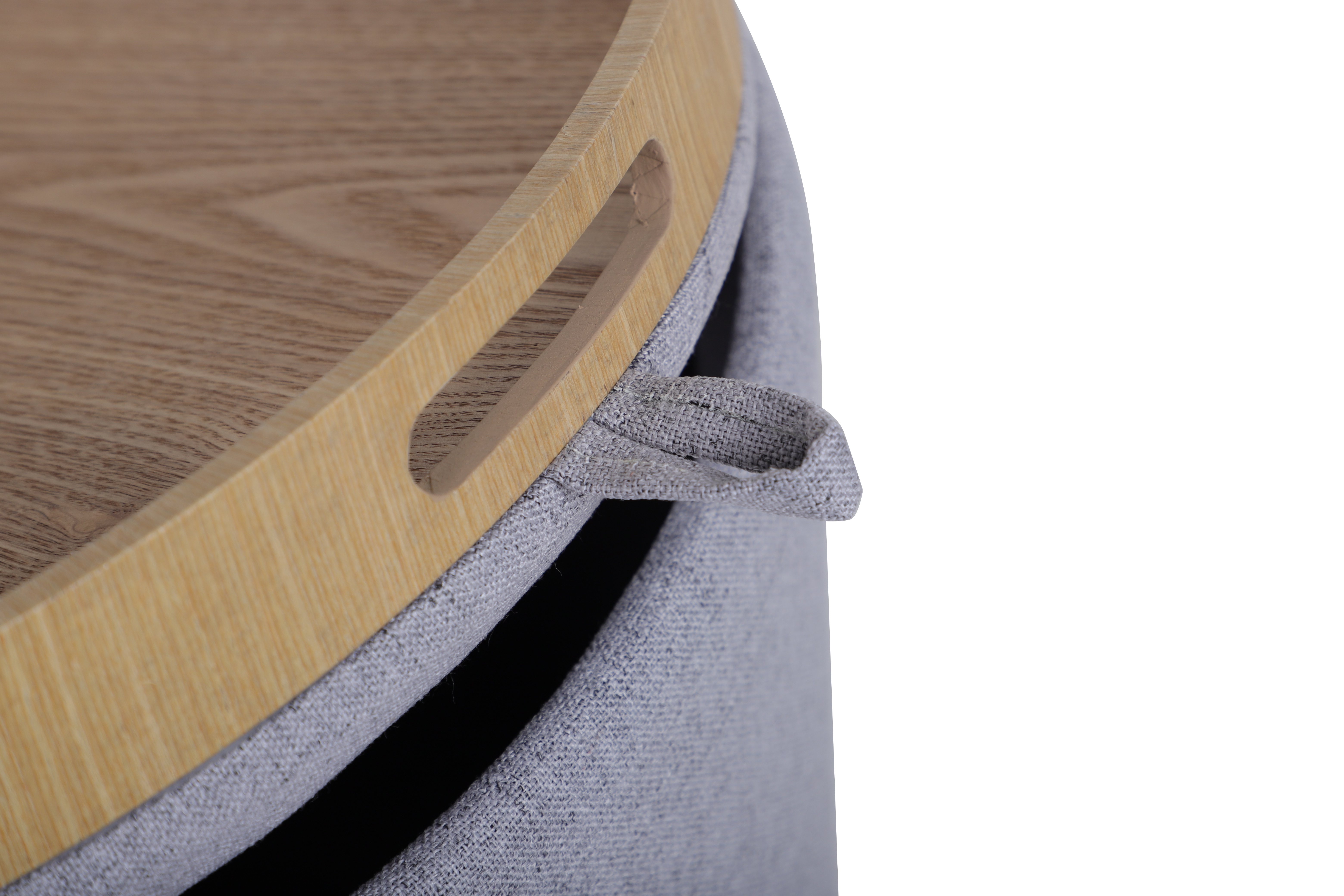 Запросить индивидуальное предложение Мягкий пуф с ящиком станет незаменимым украшением интерьера. Он не только удобный, но и функциональный. Благодаря двухсторонней крышке, пуф можно трансформировать в журнальный столик. Столешница выполнена из светлого дерева с бортиками по краям и вырезными ручками для удобства, и безопасности при использовании. Крышка пуфика полностью съемная и при необходимости её можно использовать как поднос. Полезное дополнение - ящик для хранения различных мелочей, внутри обит тканью. Компактный и вместительный, такой пуфик наполнит пространство особым уютом и теплом. Подойдет для любого интерьера - как в классическом стиле, так и в современном.