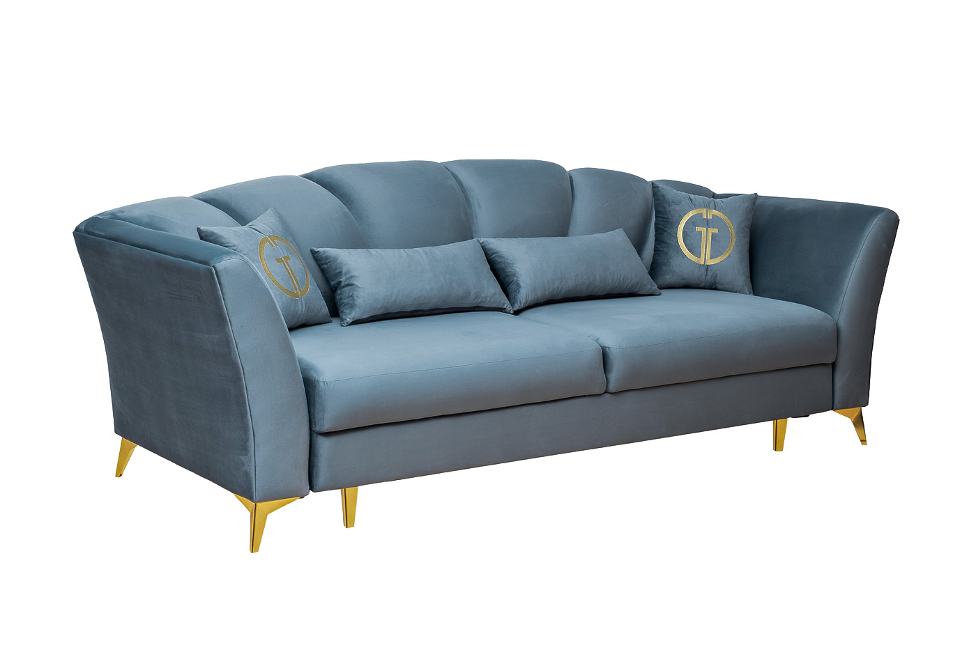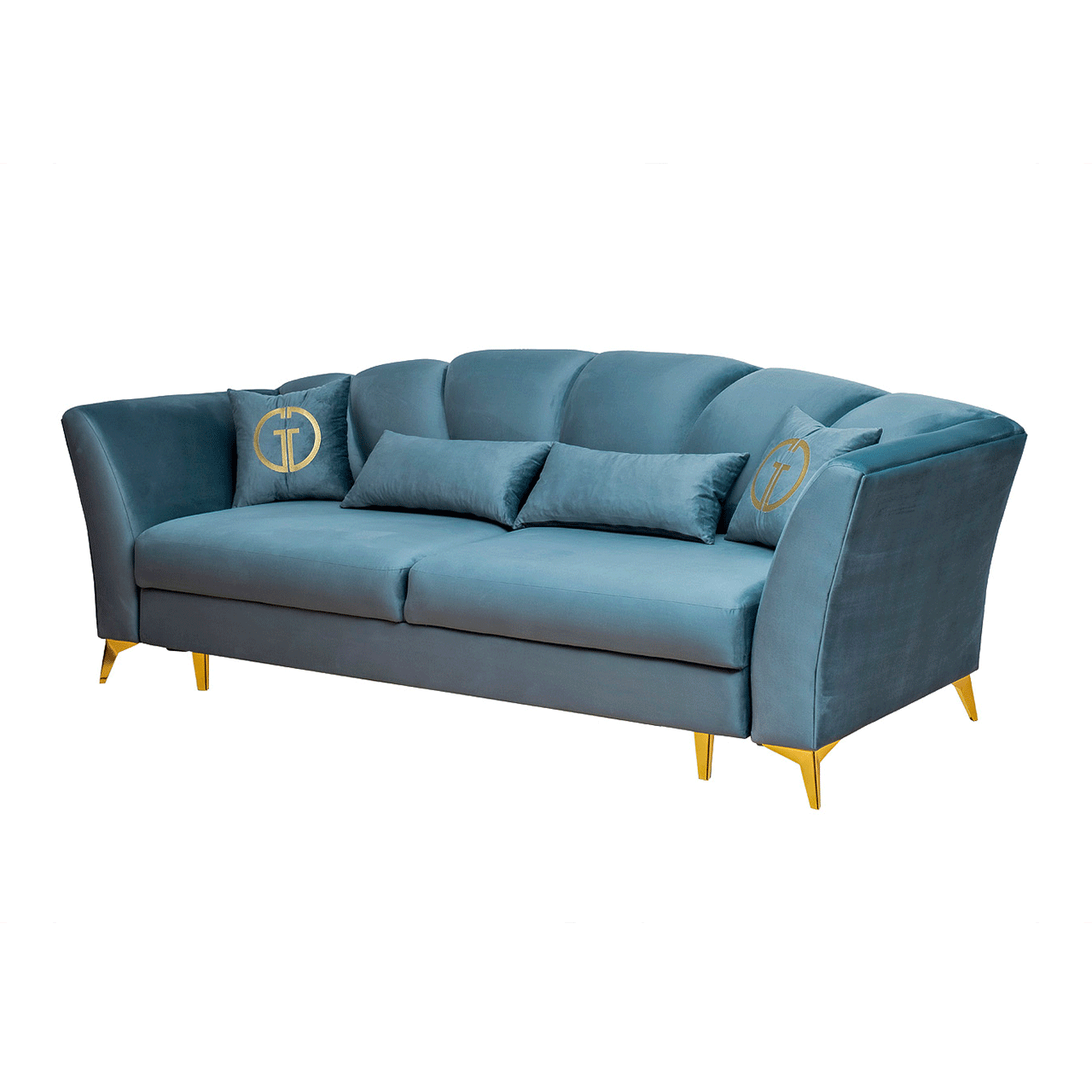 Диван Annette трехместный раскл(Пума),велюр бирюз.Riv87/зол 250*100*95