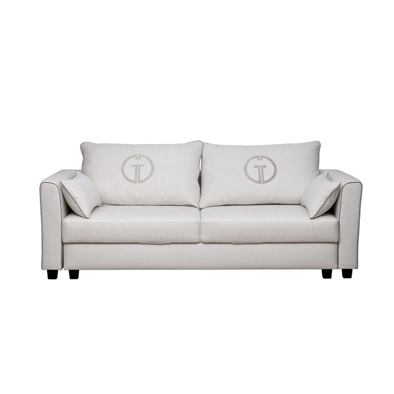 Раскладной трехместный диван MARCO станет центральным украшением гостиной. Он гармонично сочетает функционал мягкого спального места и красивого предмета интерьера. За счет механизма-трансформера «пума» этот светло-серый диван превращается в удобное спальное место для двоих человек. Прочность и долговечность мягкой мебели обеспечивает каркас из натуральной древесины, а эстетику – обивка из рогожки, диванные подушки с вышивкой, светлая цветовая гамма. Это прекрасное решение для интерьеров в стилистике арт-деко, контемпорари, классика, минимализм. Garda Decor предлагает купить диван под заказ или из наличия. Габариты сиденья: Ширина - 1910мм, глубина - 480мм, высота от пола - 440мм.Габариты спального места-1530*1910мм. В стандартном исполнении обивка из тканей коллекции Garda Decor: основная ткань- Koza2601-ECRU, кант- иск.кожа Nevada 21,цвет ножек - 4.В комплект входят две подушки спинки с эмблемой GD (в цвет канта)+ 2 декоративные прямоугольные подушки у локтей.